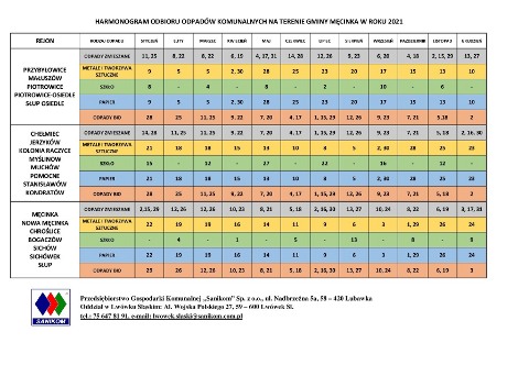HARMONOGRAM ODBIORU ODPADÓW KOMUNALNYCH NA TERENIE GMINY MĘCINKA W ROKU 2025