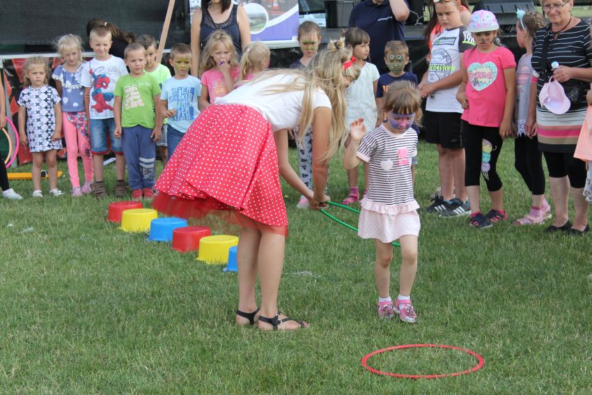 „Najważniejszymi aktorami dzisiejszego wydarzenia są dzieci” – podkreślał jego organizator Wójt Mirosław Brzozowski. I to one prezentowały się zarówno podczas pokazów tanecznych, jak i wokalnych. Duże zainteresowanie wzbudził również pokaz dziecięcej drużyny strażackiej OSP Męcinka. Najmłodsi korzystali z bezpłatnych dmuchańców oraz innowacyjnych okularów przenoszących w świat wirtualnej rzeczywistości, symulatora jazdy samochodem rajdowym, paintballu, strzelania pod okiem Klubu Strzeleckiego, fotobudki i wielu innych atrakcji.