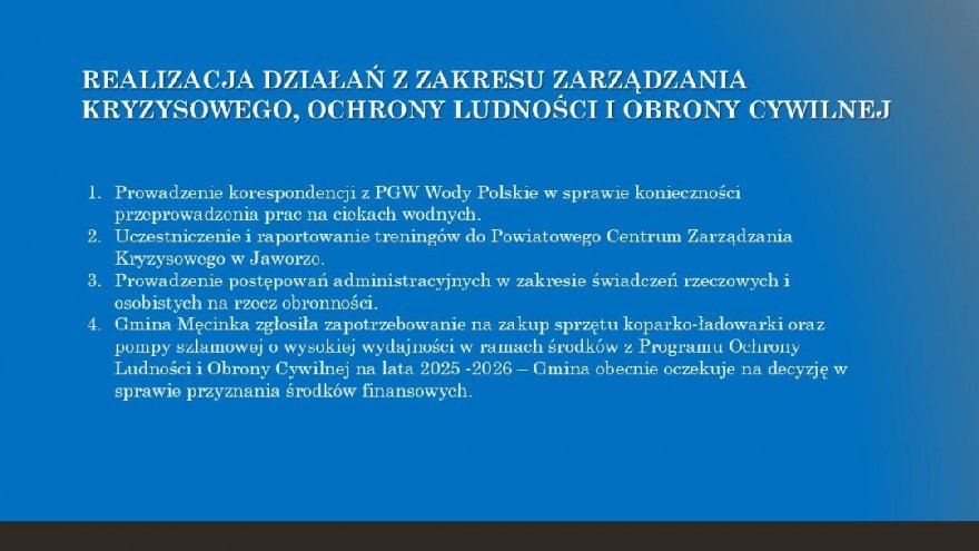 Informacja Wójta Gminy Męcinka Mirosława Brzozowskiego z działalności za okres od ostatniej sesji przedstawiona podczas Sesji Rady Gminy Męcinka w dniu 30 września 2025r.