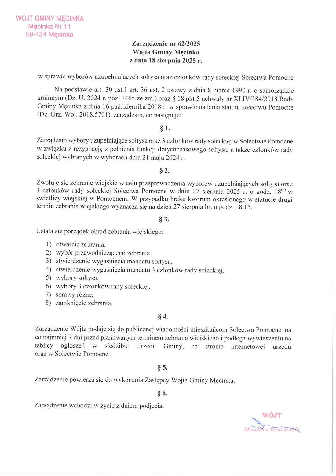 Wójt Gminy Męcinka Mirosław Brzozowski informuje, że w ramach ogólnokrajowego treningu użycia systemu powiadamiania, ostrzegania i alarmowania w dniu 1 sierpnia 2025 r. o godz. 17:00 na terenie Gminy Męcinka nadany zostanie akustyczny sygnał alarmowy (syrena) trwający 1 min.