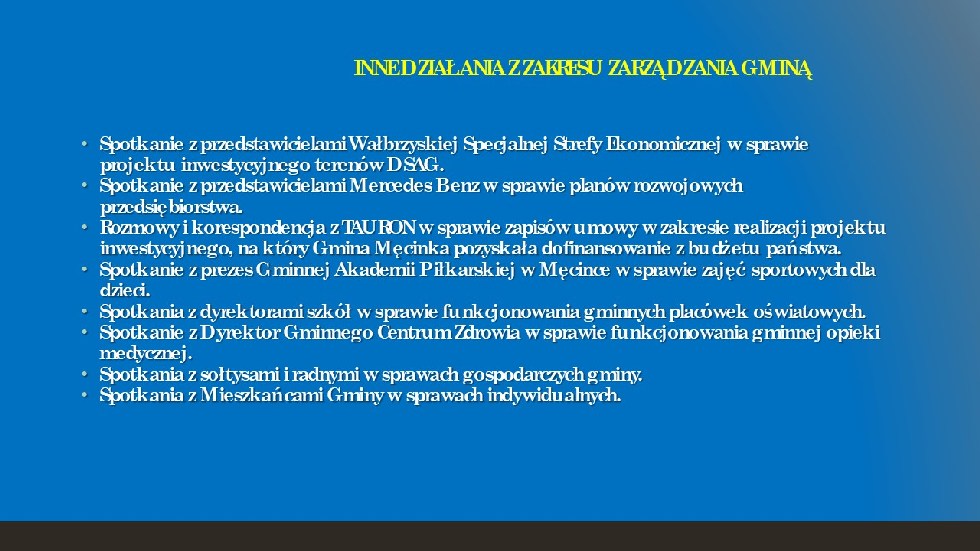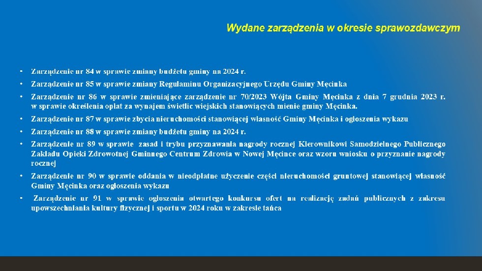 Informacja z działalności Wójta Gminy Męcinka Mirosława Brzozowskiego, przedstawiona na ostatniej Sesji Rady Gminy Męcinka w dniu 30. października 2024r.