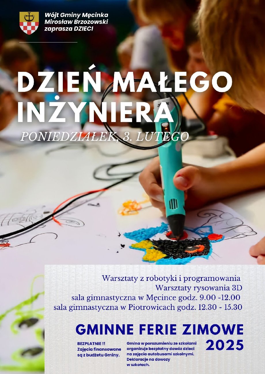 Kochane Dzieci, ferie zimowe zbliżają się dużymi krokami. To dla Was odpoczynek od nauki i czas na zabawę ❤️ Jako Gmina we współpracy ze szkołami przygotowaliśmy dla Was ciekawe zajęcia. Czekamy na Was ❤️ Do zobaczenia.