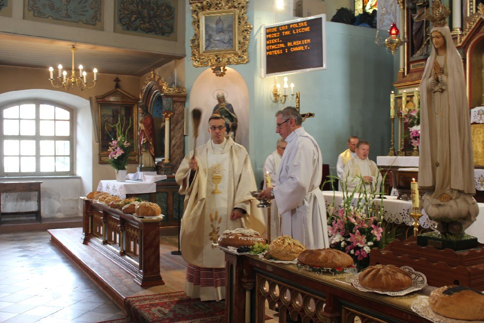 Obrzęd chleba jest najważniejszą częścią uroczystości dożynkowych - Chleb poświęcony został podczas Mszy Świętej