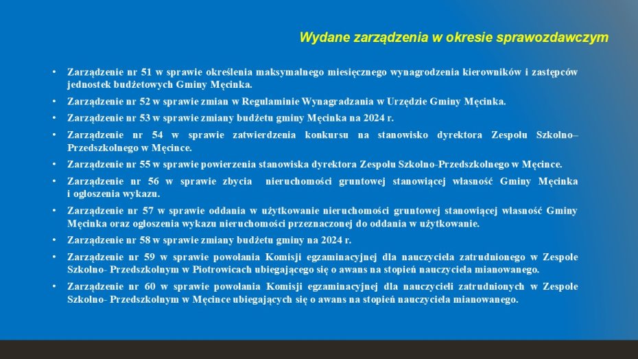 INFORMACJA Z DZIAŁALNOŚCI WÓJTA GMINY MĘCINKA MIROSŁAWA BRZOZOWSKIEGO za okres od 26 czerwca do 8 lipca 2024 r.