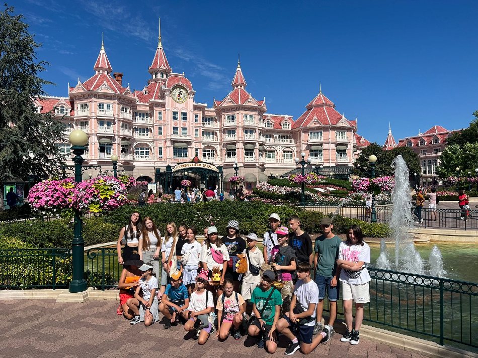 Nasi uczniowie z Gminy Męcinka pozdrawiają wszystkich Mieszkańców z Disnaylandu w Paryżu. Wycieczka jest nagrodą w ramach Systemu Motywacyjnego Wójta Gminy Męcinka