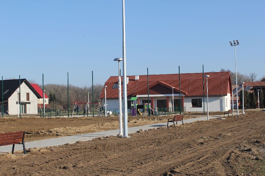 Budowa boiska sportowego, nowoczesnego placu zabaw, ścieżek pieszych oraz oświetlenia przy nowej świetlicy wiejskiej w Piotrowicach