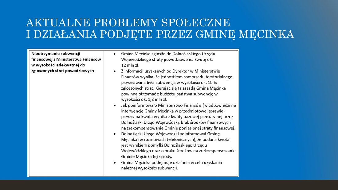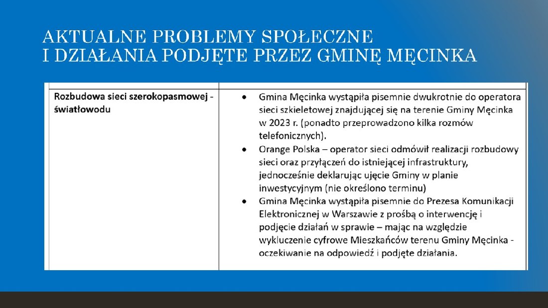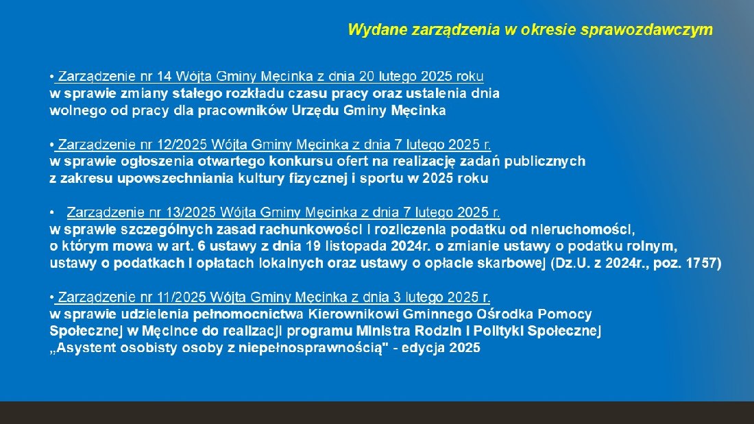 Informacja z działalności Wójta Gminy Męcinka Mirosława Brzozowskiego przedstawiona na Sesji Rady Gminy Męcinka 28. lutego 2025r.