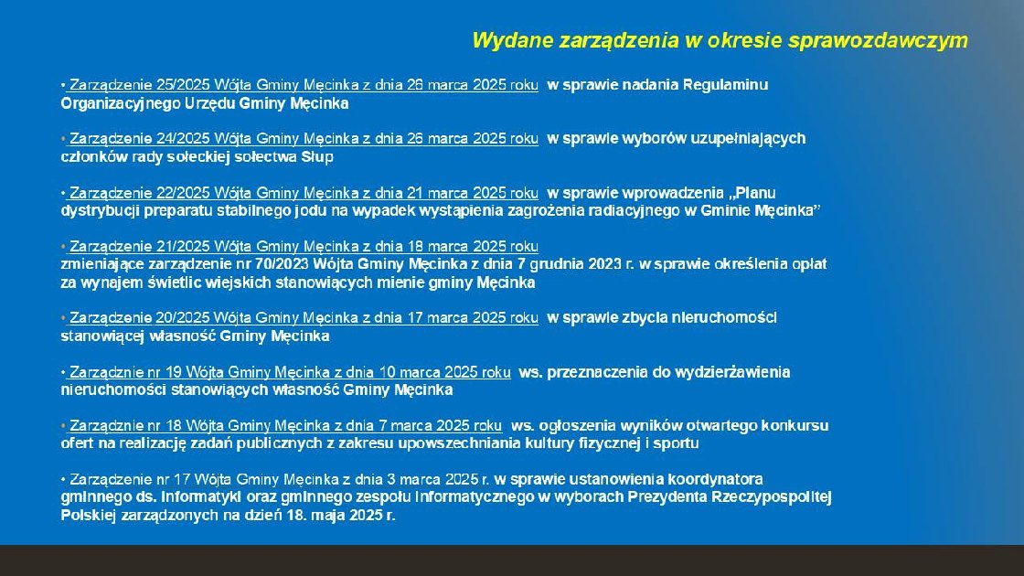 Informacja z działalności Wójta Gminy Męcinka Mirosława Brzozowskiego - 31 marca 2025 r.