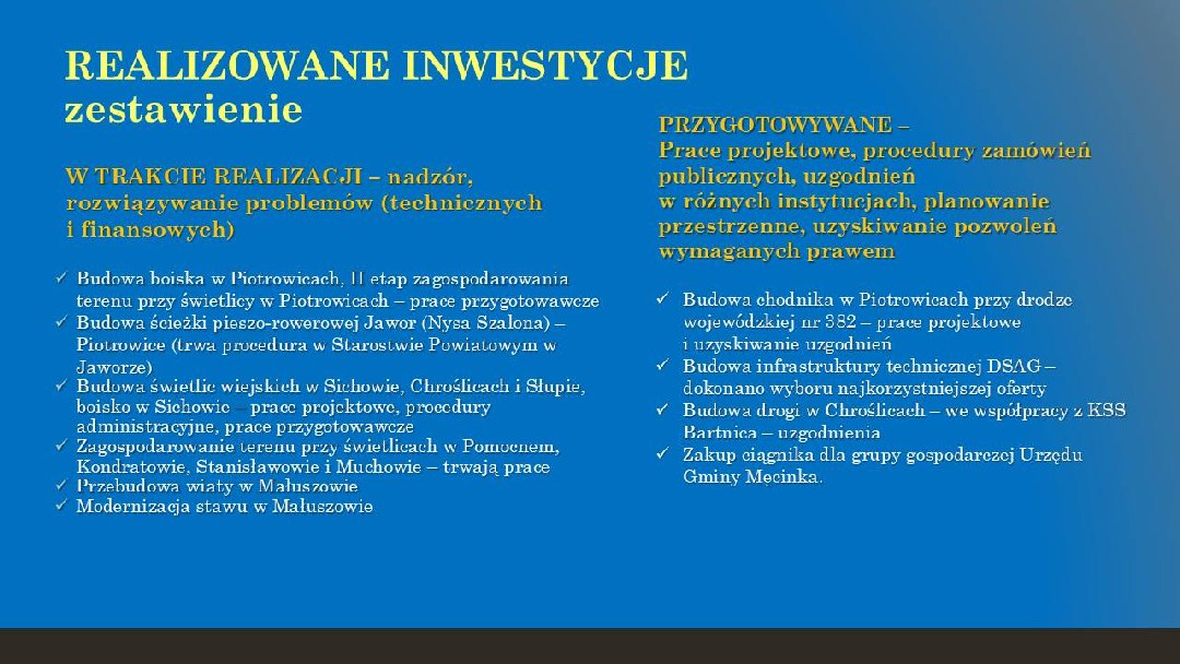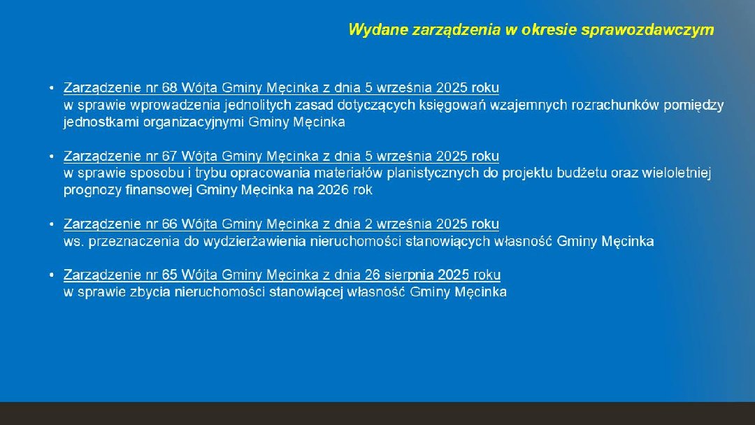 Informacja Wójta Gminy Męcinka Mirosława Brzozowskiego z działalności za okres od ostatniej sesji