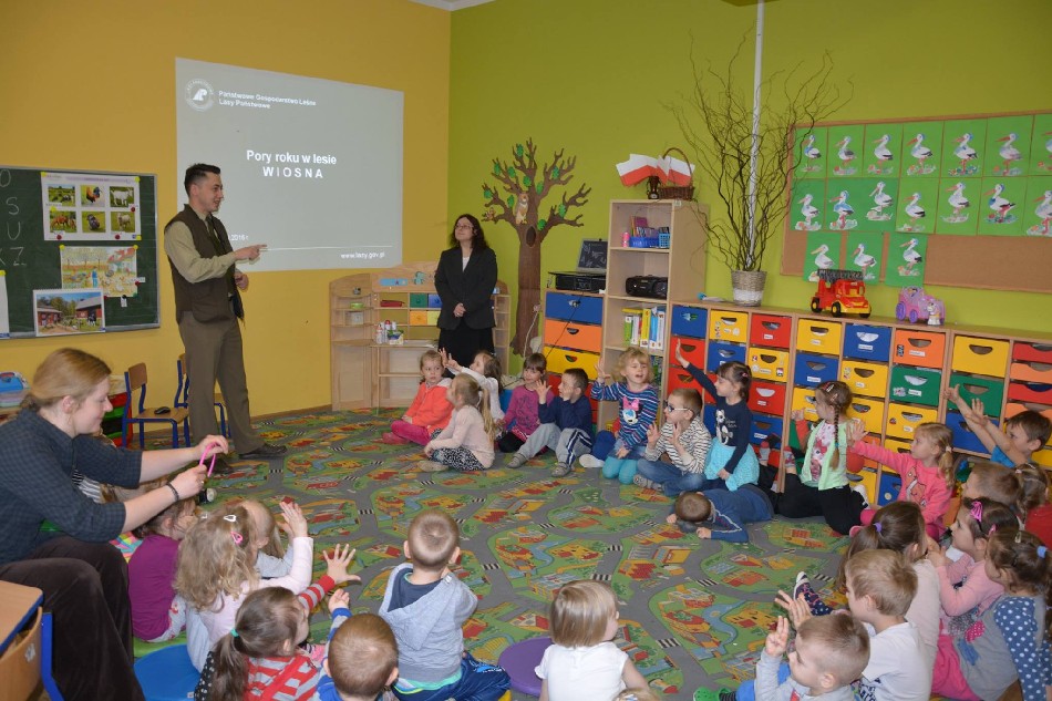 13 kwietnia przedszkole w Piotrowicach odwiedzili niezwykli goście z Nadleśnictwa Jawor: pan Dariusz Orda i pani Ewelina Kieres.