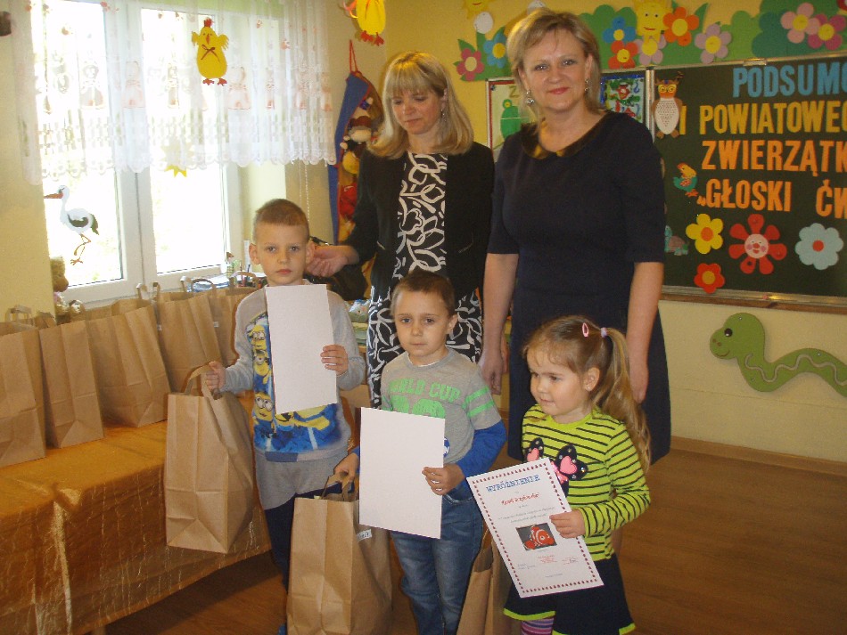 Dnia 21.04.2016r.w Przedszkolu w Męcince odbyło się uroczyste podsumowanie I Powiatowego Konkursu Logopedyczno- Plastycznego „Zwierzątka lubimy, głoski ćwiczymy” oraz wręczenie nagród i dyplomów. Wzięli w nim udział laureaci konkursu z terenu powiatu jaworskiego, opiekunowie i nauczyciele.