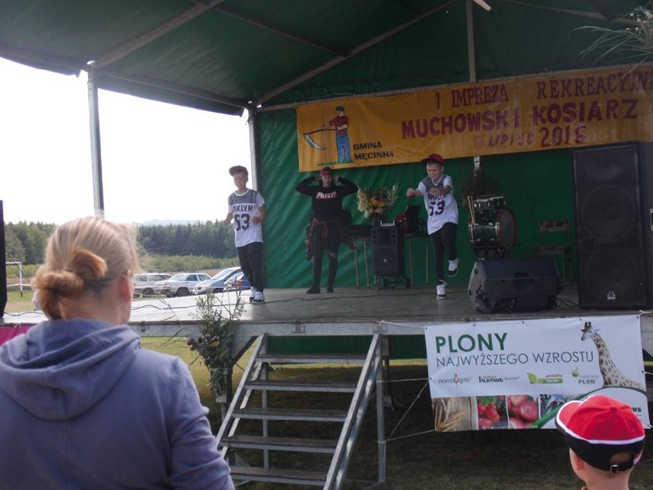 W dniu 16 lipca 2016 na boisku wiejskim w Muchowie odbyła się 1. Impreza Rekreacyjna ,,Muchowski Kosiarz” przygotowana w całości przez mieszkańców, która rozpoczęła się mszą świętą polową celebrowaną przez proboszcza parafii Pomocne, ks. Marka Lacha. Następnie otwarcia dokonała sołtys p. Janina Porębska. Do konkursu koszenia łąki udostępnionej przez p. Marię Chruściel przystąpiło 9 zawodników w tym dwie panie. Nad konkursem koszenia łąki czuwali sędziowie w składzie: p. Grzegorz Urbanowski – radny powiatu jaworskiego, p. Zbigniew Tusiński – prezes RSP pomocne, p. Zdzisław Sapieło – mieszkaniec Muchowa, wieloletni sołtys. Gdy kosiarze kosili trawę do gry terenowej przygotowała się młodzież z naszej wsi, którą nadzorował Jakub Mazur, a małe dzieci pod kierunkiem Magdaleny Stańczak rysowały, malowały i były malowane otrzymując drobne upominki. Po zakończeniu koszenia wszyscy zebrali się przy scenie i pod namiotem aby posłuchać występu strażaczek ,,Iskierki” z OSP Pomocne, zespołu ludowego ,,Chrośliczanie” z Chroślic i obejrzeć występ młodzieży z zespołu ,,K-Dance”, w składzie: Kamila i Aleksander Orda z Muchowa i Miłosz Nawara z Piotrowic.