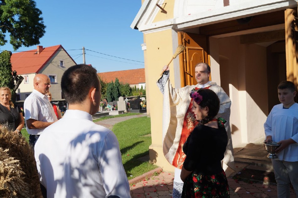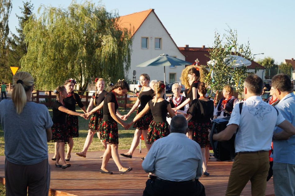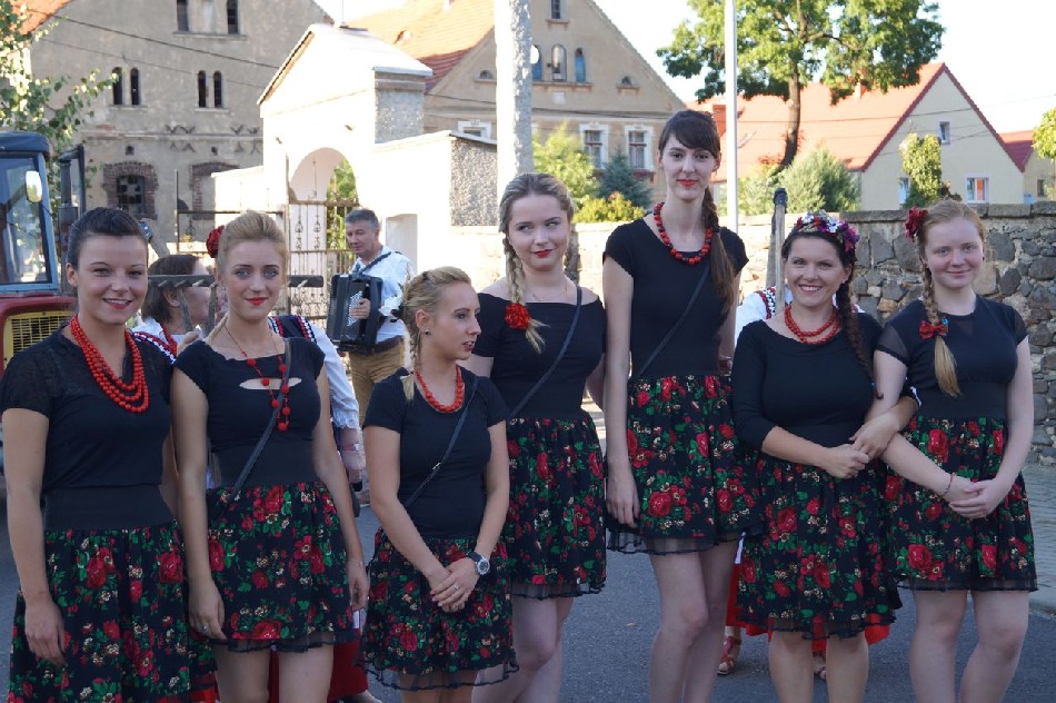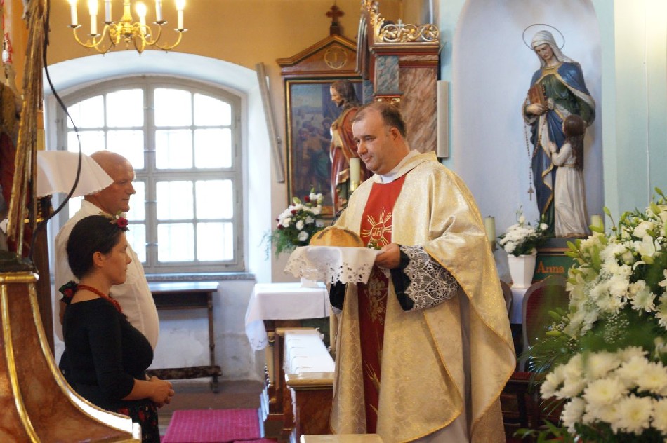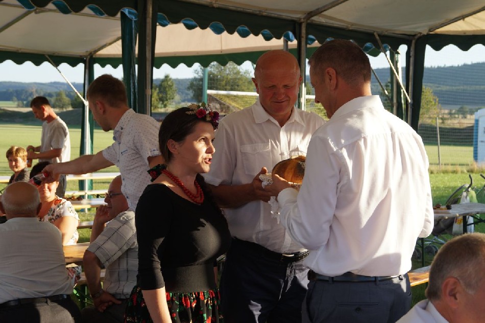 Uroczystości dożynkowe w Męcince rozpoczęły się mszą świętą w intencji rolników celebrowaną przez ks. dr Marka Kluwaka Proboszcza Parafii w Męcince. Barwny korowód na czele z delegacją wieńcową oraz zespołem folklorystycznym Ojry Bis poprowadził mieszkańców na boisko sportowe, gdzie odbyła się dalsza część wydarzenia. W uroczystości udział wziął wójt Mirosław Brzozowski, który podziękował rolnikom za trud pracy i złożył im życzenia. Podczas dożynek wiejskich wójt przekazał zgromadzonym mieszkańcom informację o przystąpieniu do realizacji budowy chodnika w Nowej Męcince, co spotkało się z dużą aprobata społeczności lokalnej.