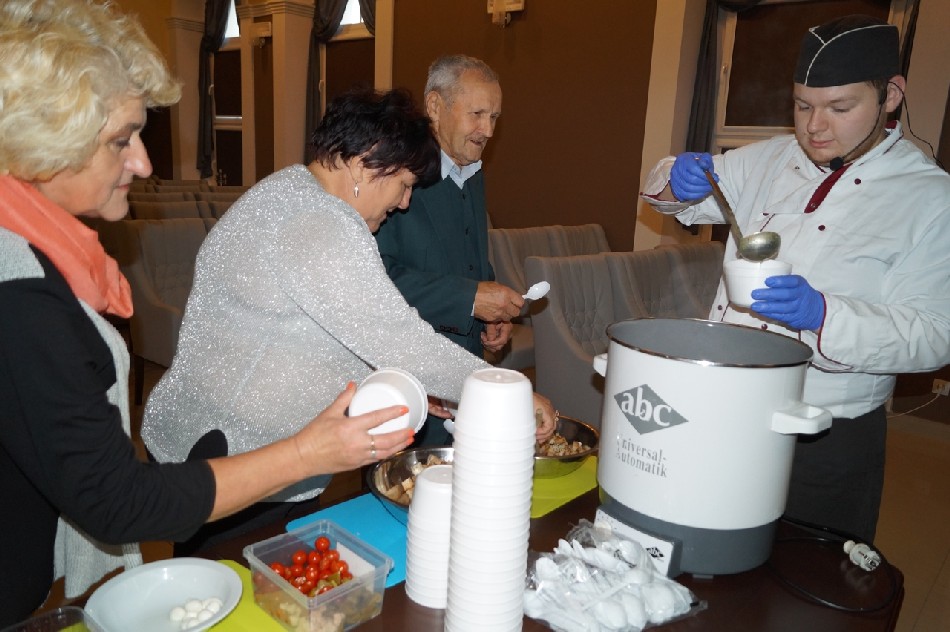 Przygotowany na żywo krem brokułowy wraz z przystawkami, ciekawostki kulinarne kucharza i uczestników warsztatów oraz przede wszystkim życzliwa atmosfera – tak przebiegało jedno z niedzielnych jesiennych popołudni w Męcince w ramach ogłoszonej w ubiegłym roku przez Wójta Gminy Męcinka akcji „Październik i listopad miesiącami seniorów w Gminie Męcinka”.