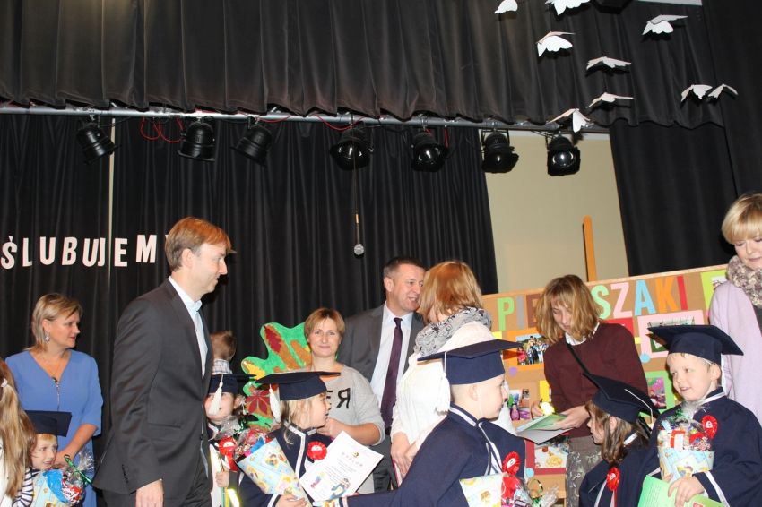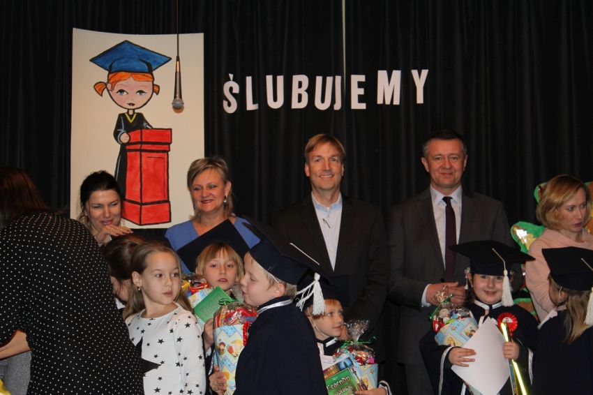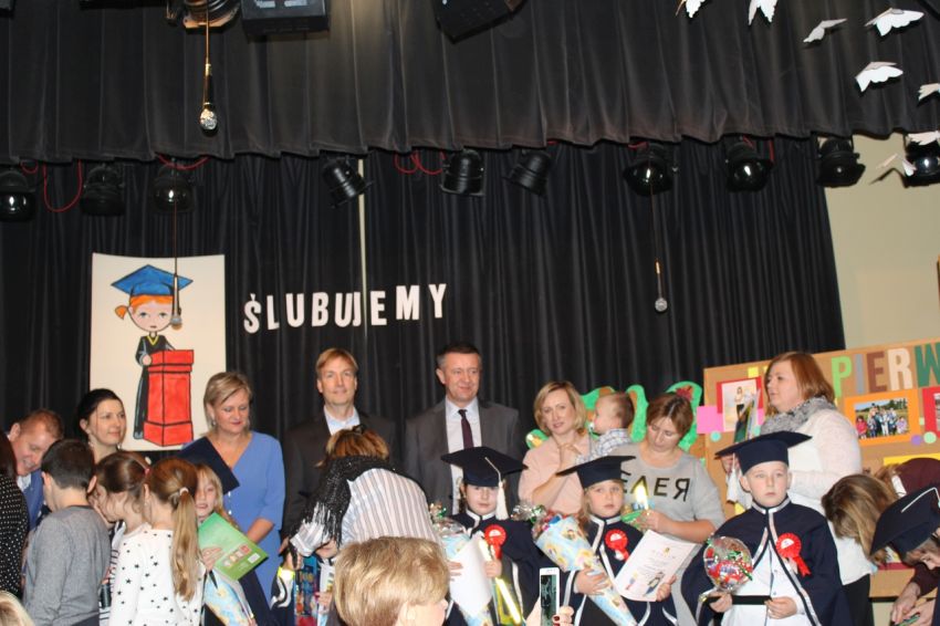 Dużą niespodzianką dla dzieci, nauczycieli i rodziców była wizyta włodarza gminy podczas pasowania pierwszoklasistów w Szkole Podstawowej w Męcince, bowiem wraz z wójtem naszych uczniów odwiedził dr Andreas Schenkel dyrektor fabryki Mercedesa, która w najbliższych latach powstanie w naszej okolicy.