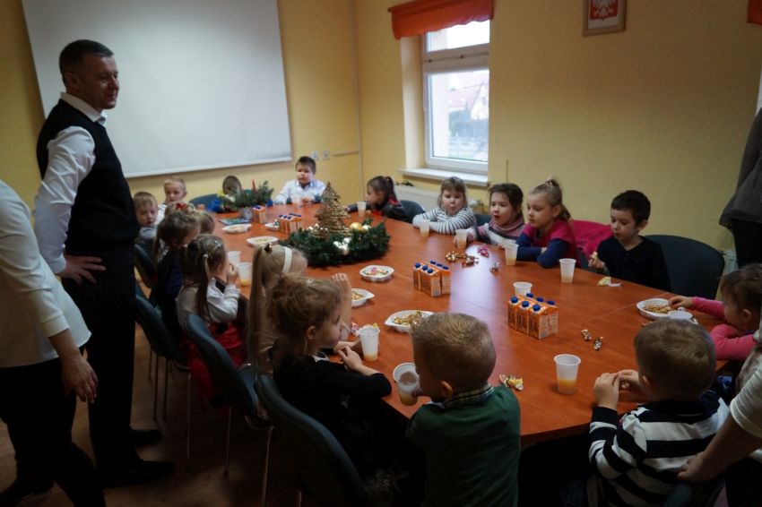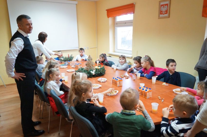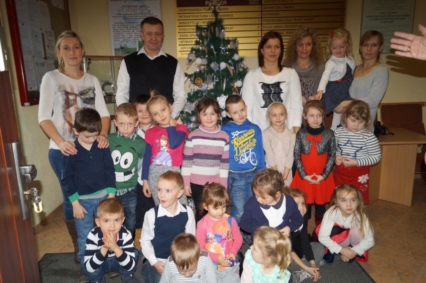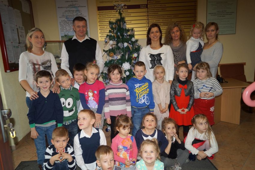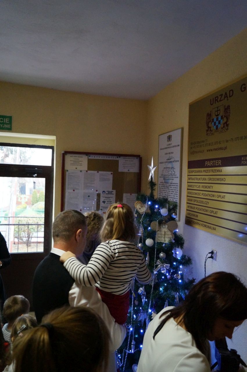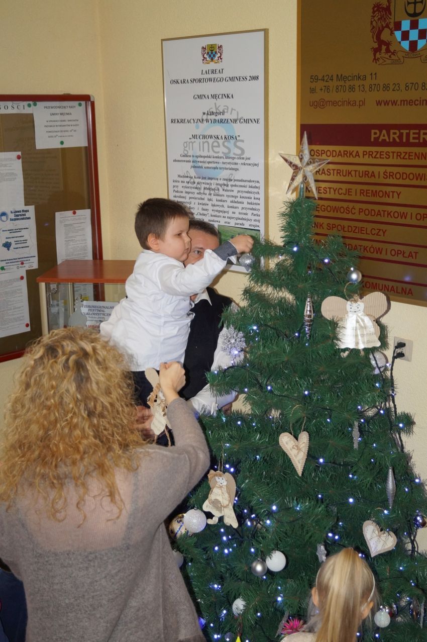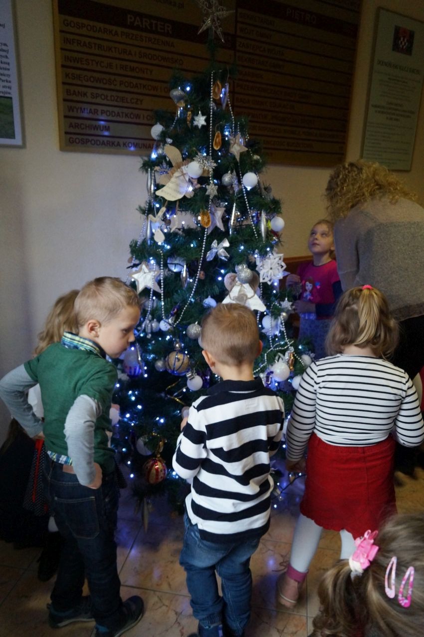 Na zaproszenie wójta przedszkolaki z Męcinki oraz Piotrowic ubierały choinkę w Urzędzie Gminy w Męcince. Dzieci przybyły z prezentami świątecznymi oraz ozdobami, którymi przyozdobiły urząd oraz świąteczne drzewko.