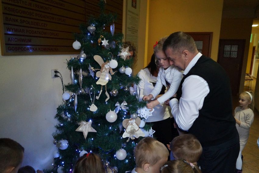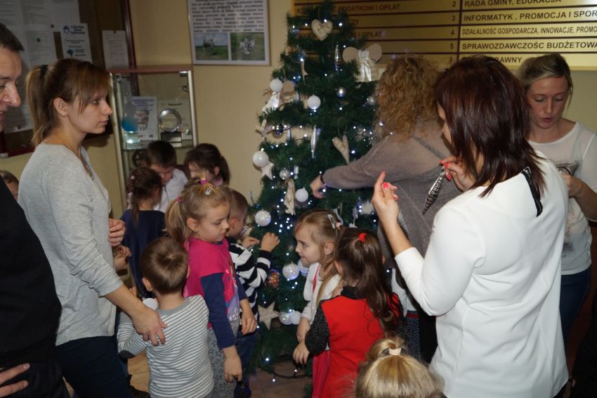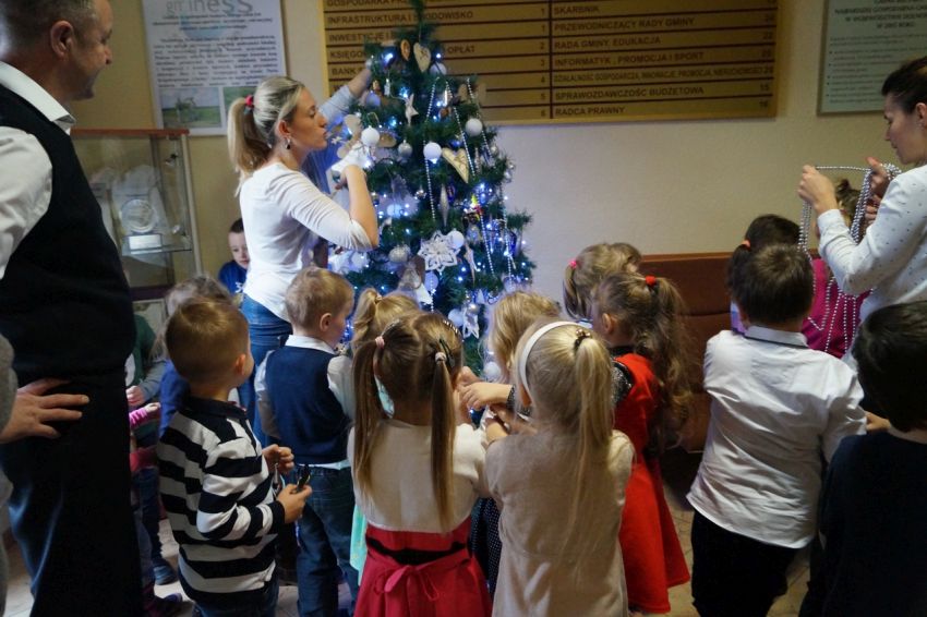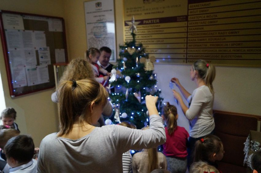 Przedszkolaki ubierały choinkę w Urzędzie Gminy w Męcince