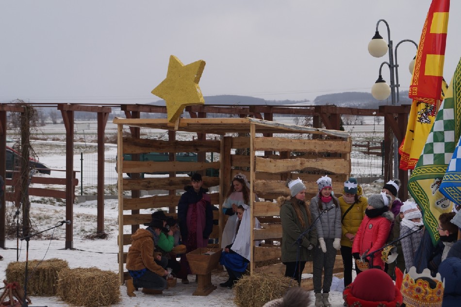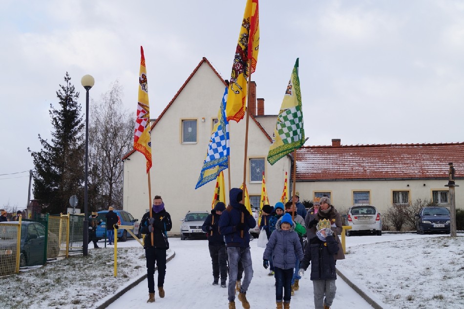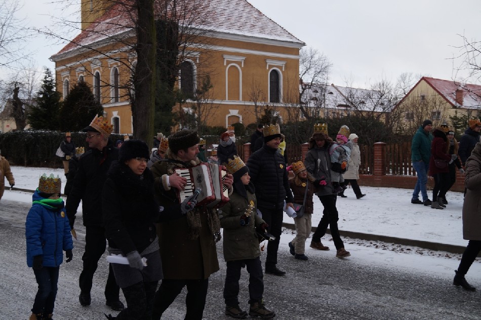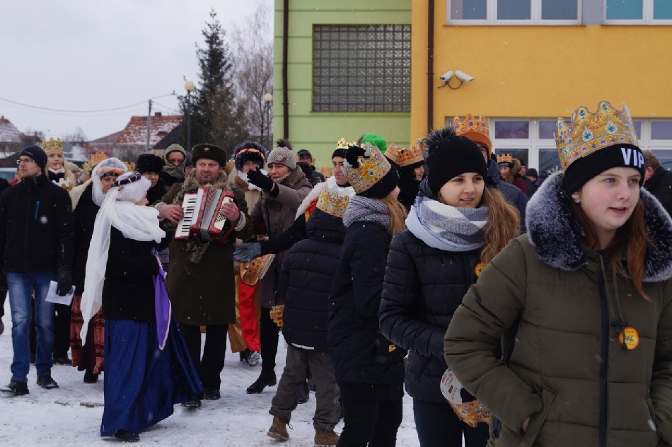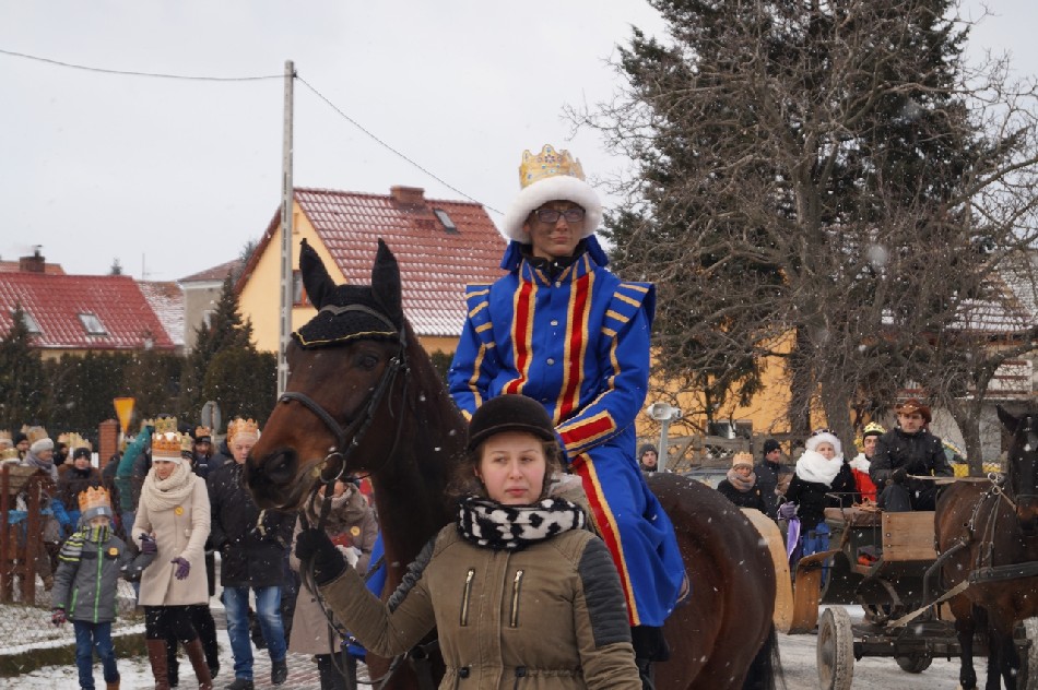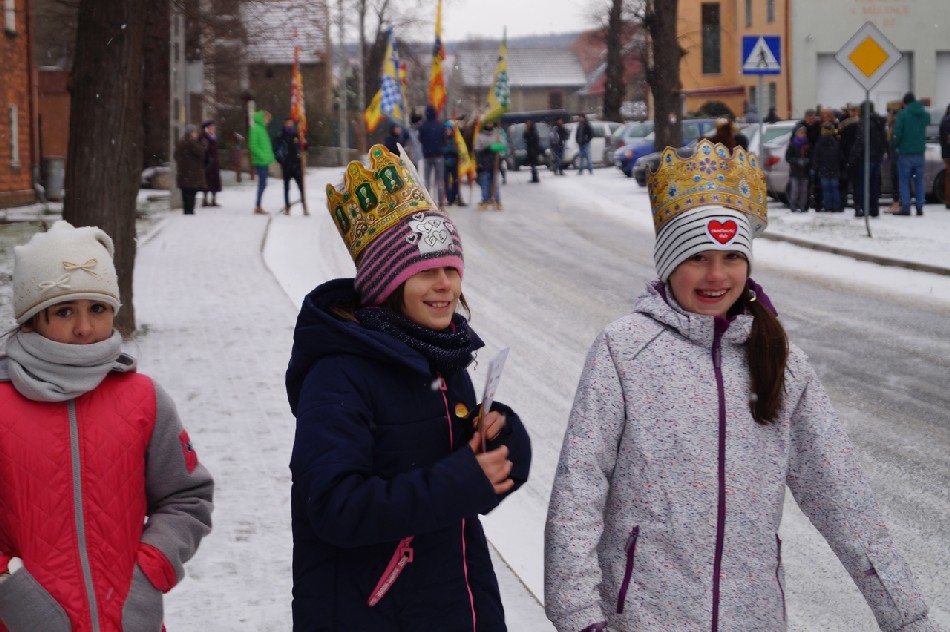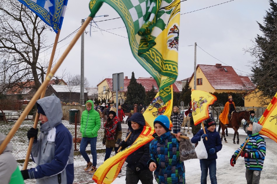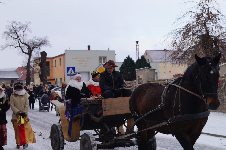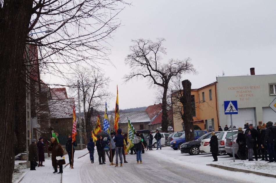 Już po raz trzeci Orszak Trzech Króli odbył się w parafii św. Andrzeja Apostoła w Męcince, który rozpoczął się uroczystą Mszą Św. o godz. 12:00. W tym roku w związku z 750 rocznicą bulli kanonizacyjnej w orszaku towarzyszyła także królowa- św. Jadwiga. Po zakończeniu Mszy św. Mędrcy ze Wschodu wraz z królową św. Jadwigą oraz mieszkańcami gminy i sąsiednich miejscowości podążali w orszaku do amfiteatru na wspólne kolędowanie. Podczas orszaku zaprezentowane zostały trzy scenki z życia św. Jadwigi, które przygotowali dorośli mieszkańcy gminy. Symbolem Orszaku Trzech Króli stały się papierowe korony, które rozdawane były uczestnikom Orszaku wraz z okolicznościowymi naklejkami i śpiewnikami kolęd. Wyjątkową chwilą podczas wspólnego kolędowania były jasełka w wykonaniu dzieci z Zespołu Szkół w Męcince.