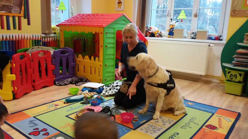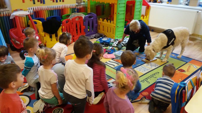 W czasie spotkania dzieci miały okazję dowiedzieć się jaką rolę odgrywa pies w społeczeństwie. Uczyły się jak bezpiecznie i odpowiedzialnie postępować z psem.