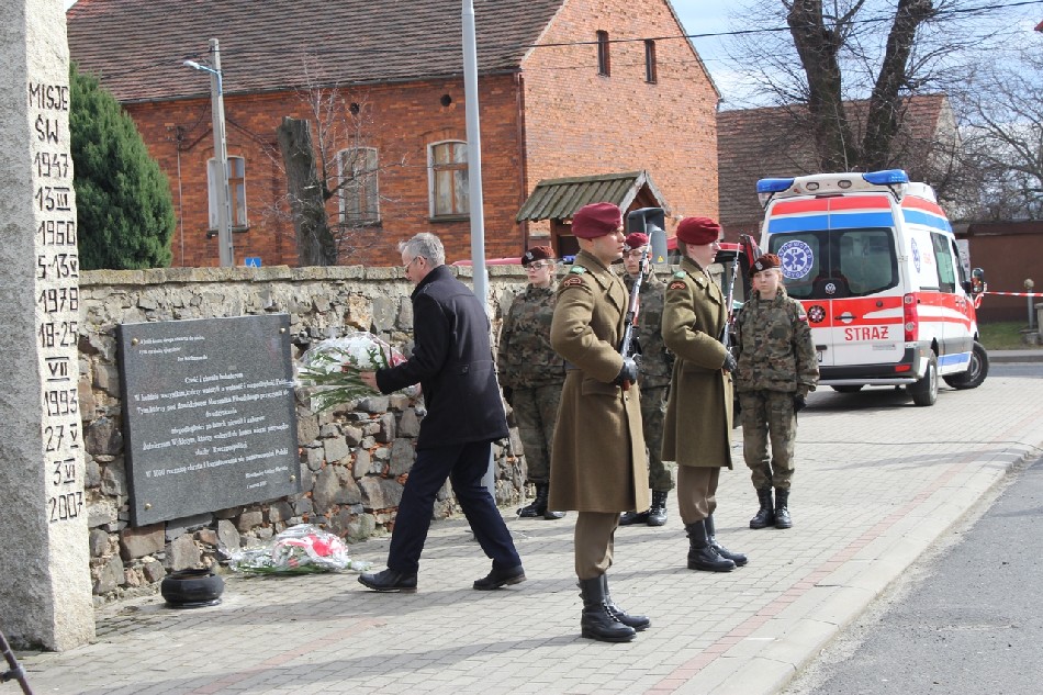 Symboliczne wiązanki pod tablicą upamiętniającą Walczących za Wolną Polskę złożone zostały przez Wójta Gminy Męcinka Mirosława Brzozowskiego, Przewodniczącego Rady Gminy Męcinka Wojciecha Lichonia, delegacje szkół Gminy Męcinka, delegacje OSP Pomocne, OSP Przybyłowice oraz OSP Męcinka.