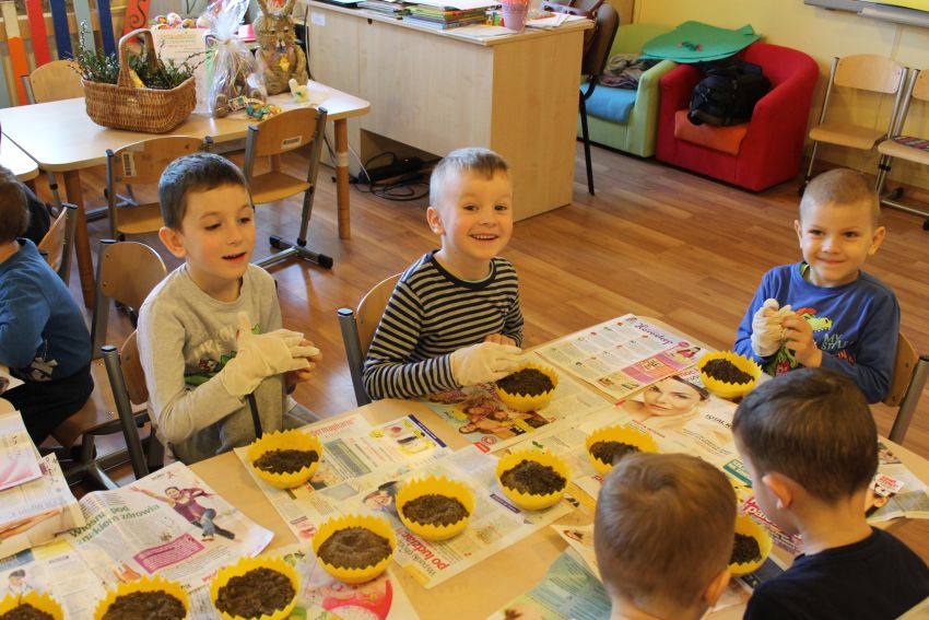 Aby cieszyć się zielonymi źdźbłami owsa na wielkanocnym stole, nasiona musimy wysiać około dwa tygodnie przed Świętami Wielkanocnymi. Po 8–10 dniach owies powinien wzejść. W ostatni piątek marca Krasnoludki z Planety Przyjaźni rozpoczęły przygotowania do Świąt Wielkanocnych.