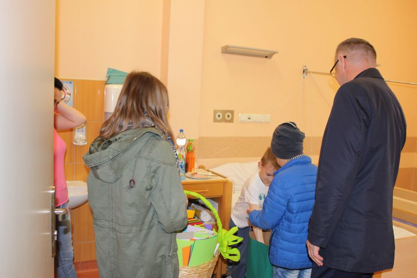 Dzieci ze szkół i przedszkoli z Gminy Męcinka już kolejny rok własnoręcznie wykonały kartki świąteczne, które powędrowały do podopiecznych z Kliniki Transplantacji Szpiku, Onkologii i Hematologii Dziecięcej we Wrocławiu, oddziałów pediatrycznych szpitali w Jaworze i Legnicy oraz oddziału chirurgii dziecięcej szpitala w Legnicy. W imieniu uczniów i przedszkolaków życzenia dla dzieci przekazali wójt Mirosław Brzozowski, ks. dr Marek Kluwak oraz uczniowie Klaudia Malina i Krystian Kerger. Dzieci w szpitalach od naszej delegacji otrzymały również słodycze.