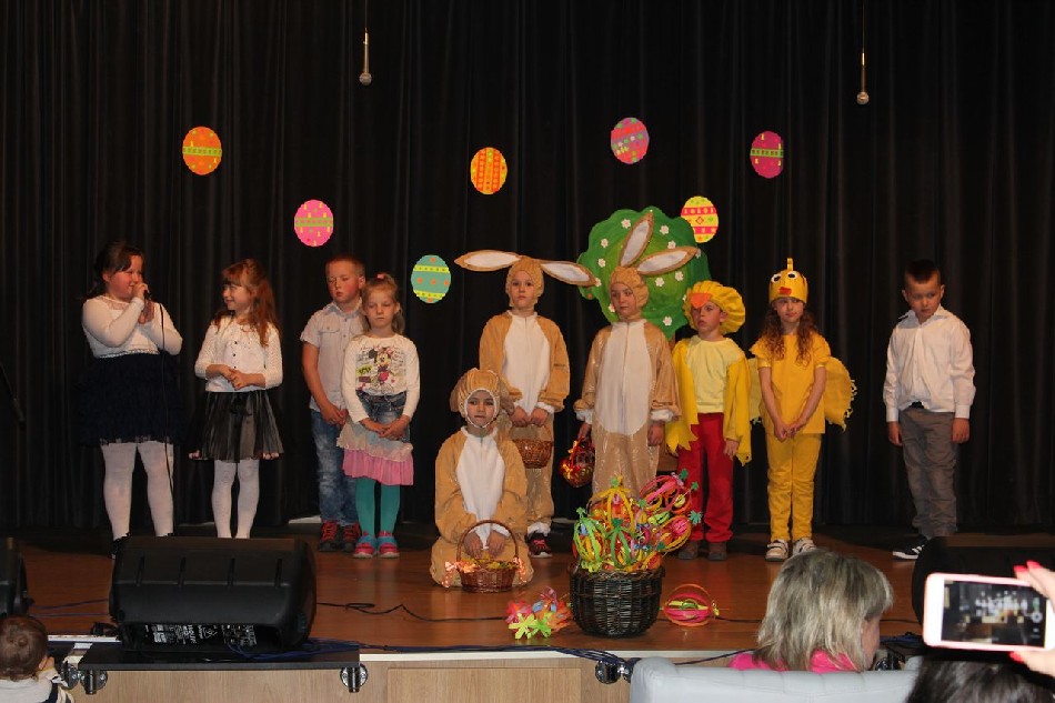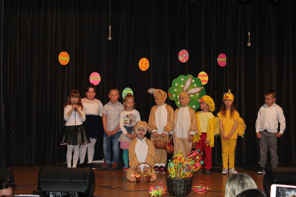 Pierwszoklasiści swoim występem nawoływały wiosnę i wraz z przedszkolakami wniosły do spotkania wiele radości i uśmiechu. Duże wrażenie zrobiły na wszystkich wiosenno - wielkanocne stroje dzieci oraz barwne dekoracje. Wszystko to sprawiło, że występ oglądało się z ogromną przyjemnością i na widowni bardzo szybko zagościł wiosenny nastrój.
