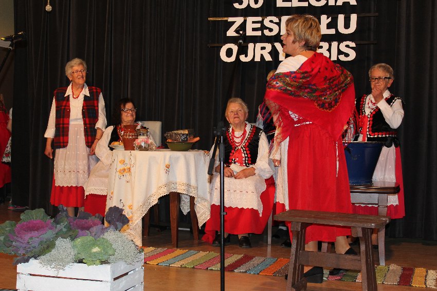 Jubileusz 50-lecia działalności artystycznej obchodził w minioną niedzielę Zespół „Ojry Bis” z Męcinki. Założycielką i pomysłodawczynią zespołu jest pani Genowefa Kunecka. Uroczystość miała doniosły i wzruszający charakter. Prezentacja historii zespołu zawierająca liczne fotografie jak i wspomnienia wzbudziła sentyment u wielu uczestników niedzielnego spotkania. W podsumowaniu wieloletniej pracy artystycznej „Ojry – Bis” przedstawione zostały odgrywane widowiska, obrzędy ludowe oraz zdobyte nagrody. Minutą ciszy upamiętniono członków zespołu, którzy odeszli do wieczności.