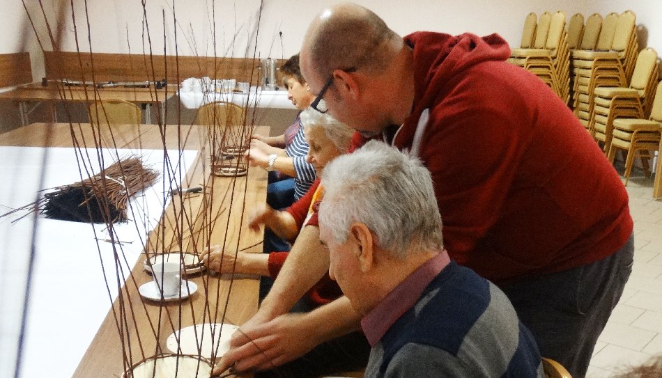 W minioną niedzielę 5 listopada br. w świetlicy wiejskiej w Chroślicach odbyły się warsztaty wikliniarskie zorganizowane przez Wójta Gminy Męcinka w ramach akcji „Październik – listopad miesiącami seniorów w Gminie Męcinka.” Warsztaty wyplatania koszyków prowadził mistrz w zawodzie koszykarz – plecionkarz Rafał Górczyński. Podczas spotkania artysta opowiedział o swojej twórczości, pokazał uczestnikom spotkania kilka wykonanych przez siebie prac oraz zaprezentował podstawową technikę wyplatania koszy. Uczestnicy warsztatów pod okiem mistrza mieli możliwość spróbować samodzielnego wyplatania koszyków, z czego bardzo chętnie skorzystali. Wykonane prace naszych seniorów były bardzo piękne.