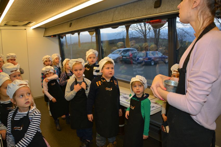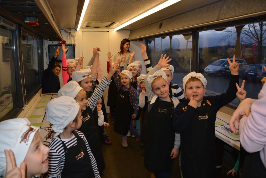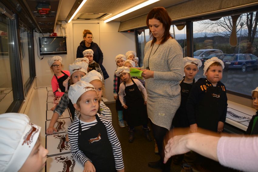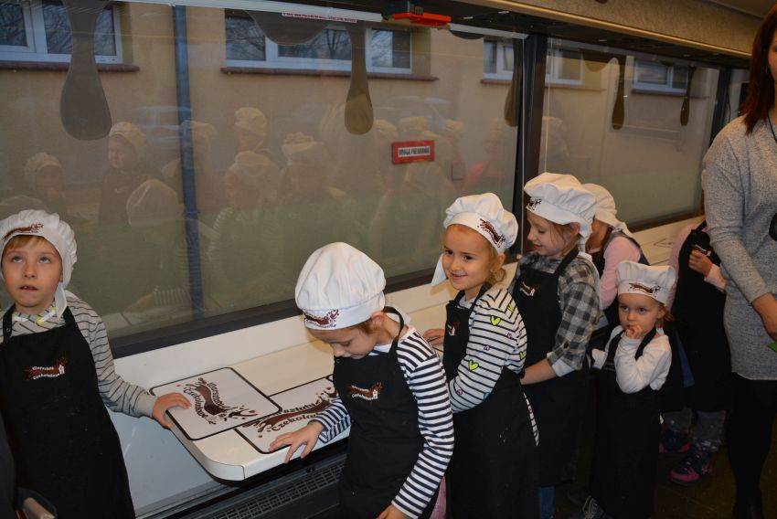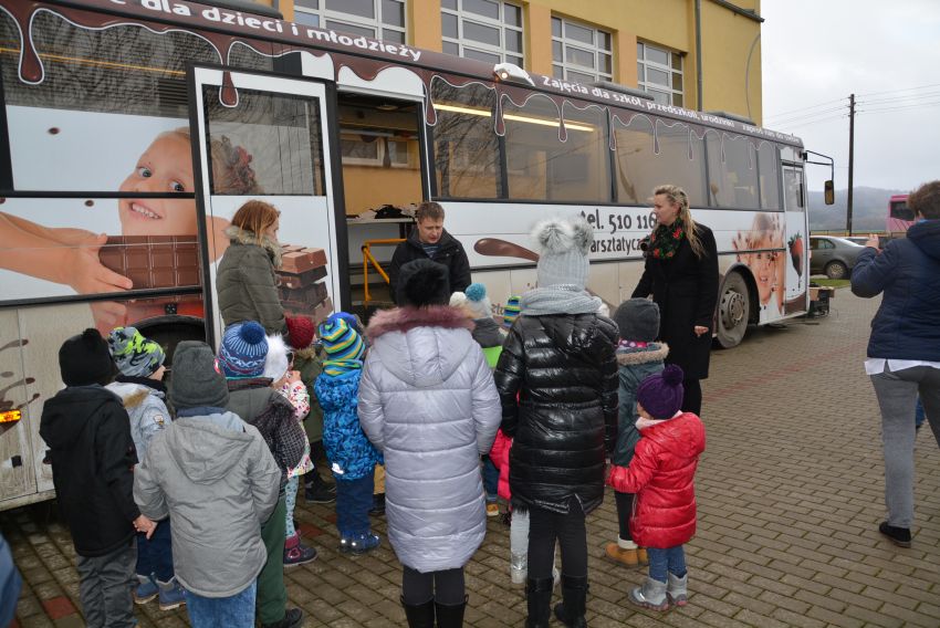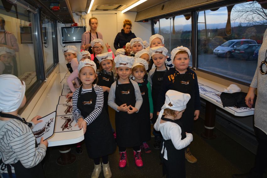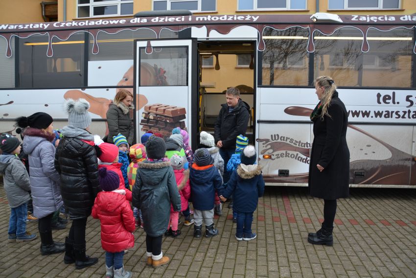 Słodka przygodę z czekoladą miały okazję przeżyć przedszkolaki z Gminnego Przedszkola Kulinarnego w Piotrowicach podczas warsztatów w autobusie czekoladowym, który przyjechał do szkoły w Piotrowicach.