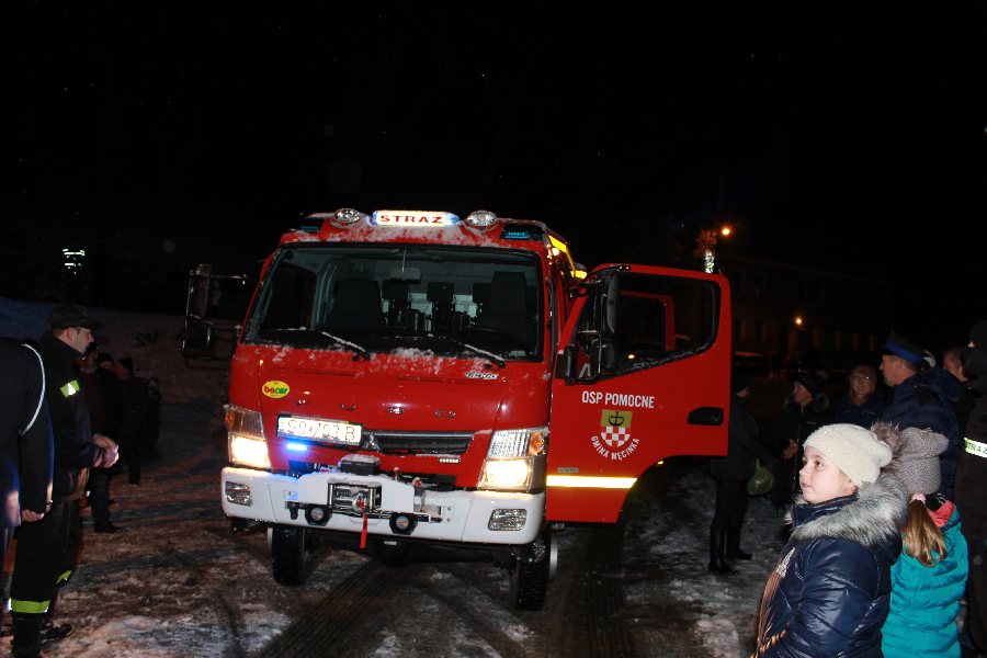 Mieszkańcy górskich terenów Gminy Męcinka mogą czuć się bezpieczniej, a to za sprawą nowego samochodu ratowniczo – gaśniczego, który otrzymała Ochotnicza Straż Pożarna w Pomocnem. Uroczyste powitanie nowego wozu strażackiego odbyło się 17 grudnia 2017r. Płonące pochodnie i fajerwerki, ale przede wszystkim radość na twarzach zarówno strażaków, jak i wielu innych mieszkańców świadczyły o tym, że to ważny dzień dla społeczności lokalnej.