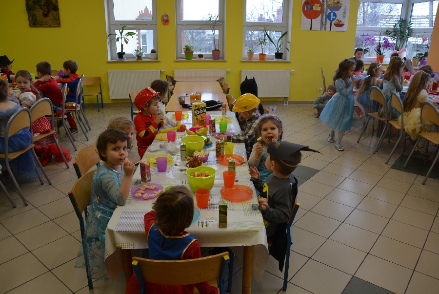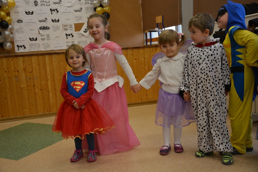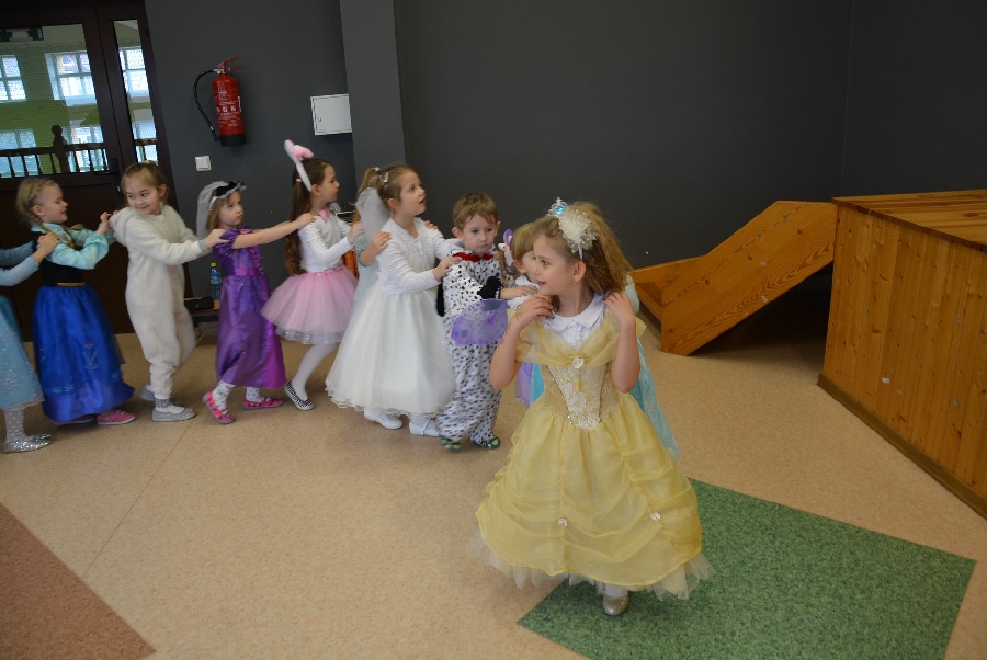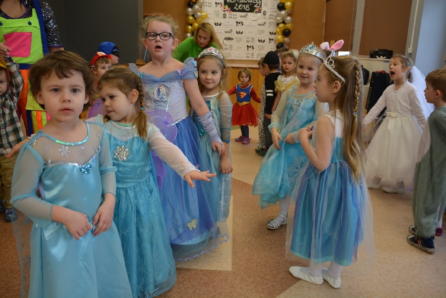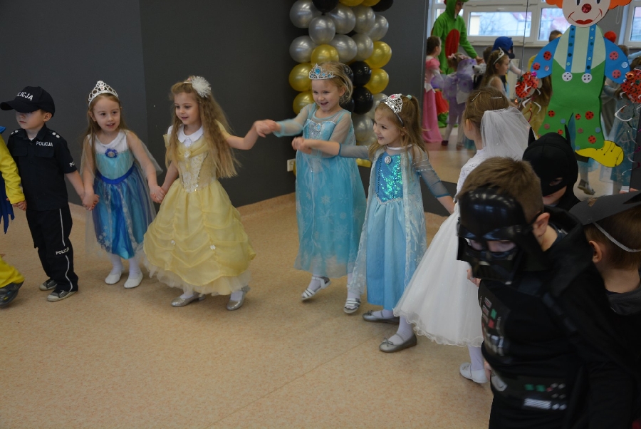 Wystrój auli przygotowany przez Panie z przedszkola, wprowadził wszystkich w radosny nastrój oraz zachęcał do wesołej zabawy. W pierwszej kolejności dzieci miały możliwość pozowania do zdjęć grupowych oraz indywidualnych. Na sali podczas pląsów robiło się kolorowo, wszyscy bawili się wesoło, uśmiech nie znikał z twarzy mimo chwilowego zmęczenia. Podczas odpoczynku uczennice z Samorządu Uczniowskiego zachęcały do śpiewania znanych piosenek, prowadziły różne zabawy i sprzedawały ciasteczka z wróżbami. Wiele śmiechu było podczas tańca z balonikiem i na gazecie. Po kilku chwilach wypoczynku, muzyka znowu porwała wszystkich do tańca. Kiedy czas zabawy dobiegł końca, dzieci z żalem opuszczały salę balową. Kolejny bal karnawałowy już za rok!