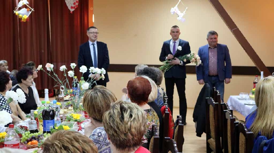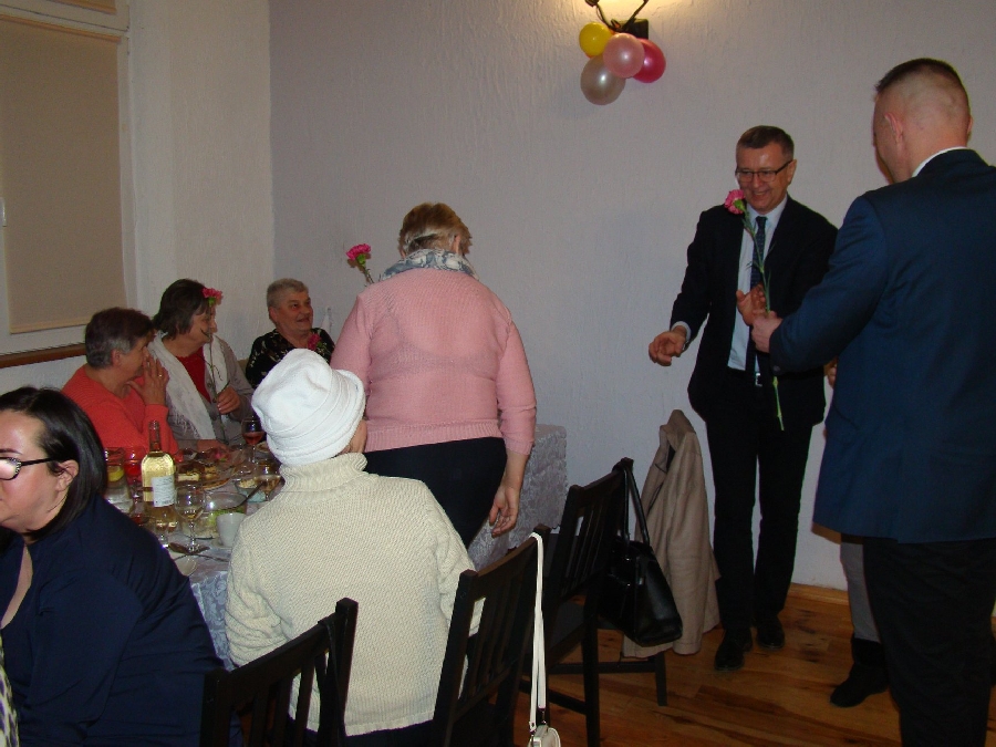 Z życzeniami przybył również Wójt Gminy Męcinka Mirosław Brzozowski wraz z Wiceprzewodniczącym Rady Powiatu Jaworskiego Sylwesterem Rudźcem obdarowując panie kwiatami.
