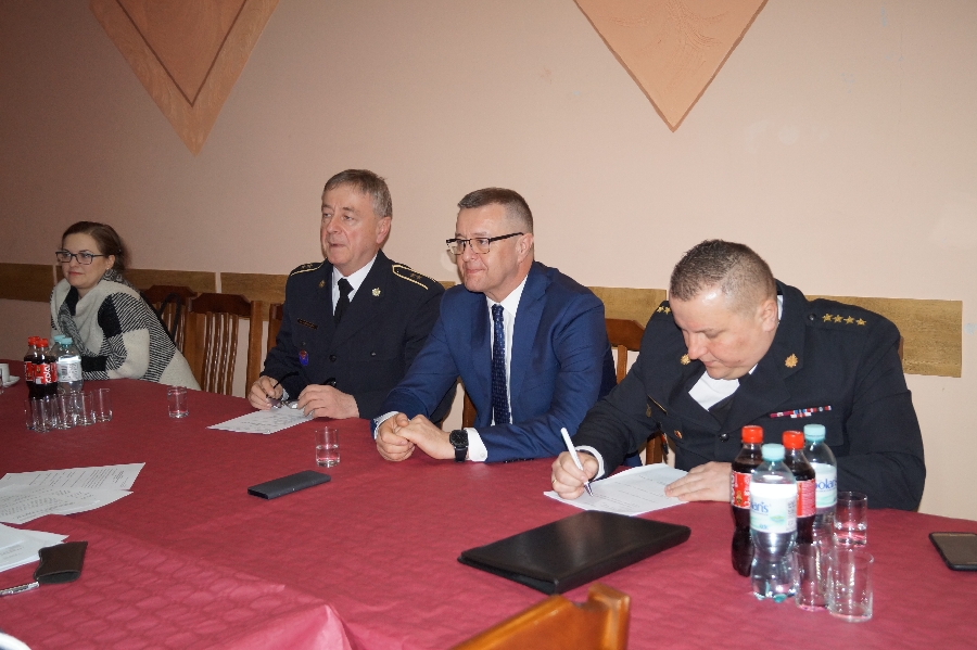 W zebraniu uczestniczyli goście zaproszeni Wójt Gminy Męcinka Mirosław Brzozowski. Komendant Gminny Wiesław Gregulski, kpt. Daniel Malinowski z PSP Jawor, Przewodniczący Rady Gminy Wojciech Lichoń, radny Kamil Bobowski, proboszcz parafii jak i kapelan jednostki ks. Marek Lach oraz prezes Stowarzyszenia Patria Nostra Ewa Pańczak.
