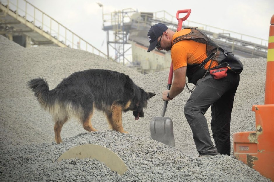 W ramach centralnego szkolenia psów ratowniczych GOPR, które odbyło się w dniach od 6 do 10 czerwca br. zorganizowane zostały również ćwiczenia na terenie Gminy Męcinka (kopalnia Colas w Piotrowicach).