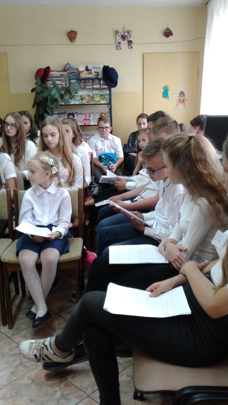 Dnia 13 września br. w Filii GPB w Piotrowicach odbyło się VII Narodowe Czytanie „Przedwiośnia” Stefana Żeromskiego. Czytano rozdział „Podróż przez Rosję. Opowieść o szklanych domach.” Tegoroczna akcja oprócz stałego, głównego celu jakim jest promocja czytelnictwa, była też formą uczczenia jubileuszu 100 – rocznicy odzyskania niepodległości przez Polskę. Uczestnikami tego wydarzenia byli uczniowie klas VIII oraz zaproszeni goście: Wójt Gminy Mirosław Brzozowski, Dyrektor Zespołu Szkolno-Przedszkolnego Jolanta Cisoń, a także dwóch uczniów klasy II (Zuzia Jarmakowicz i Wojtek Radomski). Cała inicjatywa została zorganizowana przez nauczyciela szkolnej biblioteki Bożenę Moderacką, kierownika GBP w Męcince Elżbietę Chodor oraz przy współudziale polonistów Marii Miazgi i Niny Wikrorowskiej. Aby przybliżyć postać marszałka Józefa Piłsudzkiego nauczycielka historii Maria Miazga wraz z uczniami przygotowała wywiad dotyczący życia twórcy niepodległości.