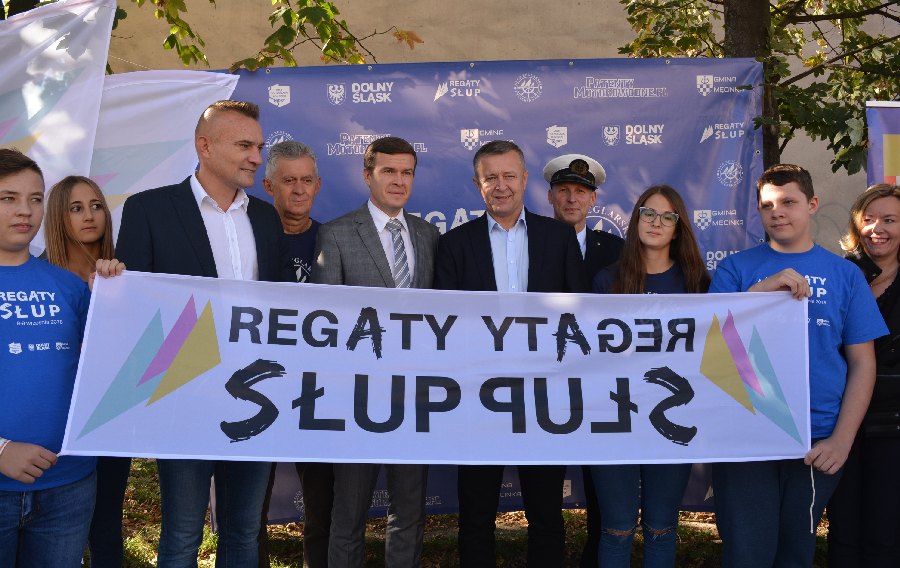 Regaty Słup 2019, budowa ścieżki pieszo -rowerowej, przejęcie bazy pod działalność klubu żeglarskiego oraz rozbudowa infrastruktury towarzyszącej, w tym pomosty i wiaty były głównym tematem rozmów Ministra Sportu i Turystyki Witolda Bańka z Mirosławem Brzozowskim Wójtem Gminy Męcinka, Sylwestrem Rudźcem Wiceprzewodniczącym Rady Powiatu Jaworskiego oraz Komandorem Klubu Żeglarskiego Grzegorzem Dyjasem w dniu 5 października 2018 r. na terenie Gminy Męcinka.