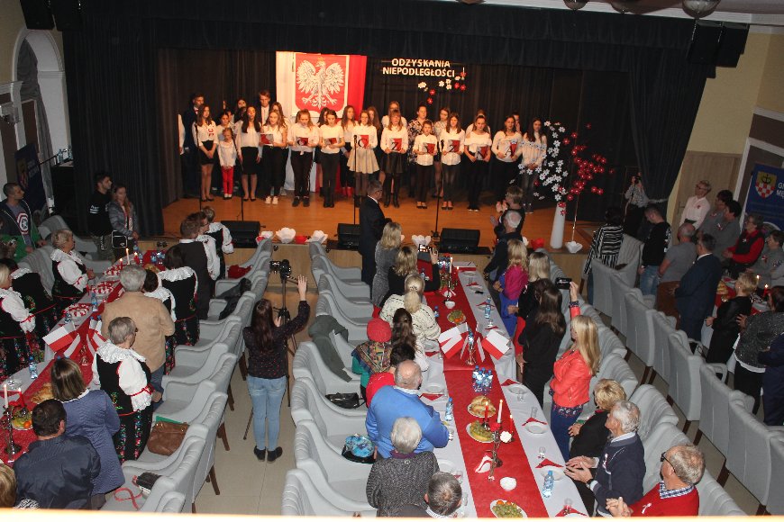 Wspólne odśpiewanie hymnu państwowego, inscenizacja wydarzeń dziejów naszego państwa, wzruszający taniec z flagami w wykonaniu uczniów Zespołu Szkół w Męcince, pieśni patriotyczne zespołu Piotrowiczanki, ale także test wiedzy historycznej o stuletniej historii Polski przyciągnęły tego dnia do sali widowiskowej w Męcince wielu mieszkańców naszej gminy. Na spotkanie z mieszkańcami przybyła także Minister Elżbieta Witek oraz Radny Powiatu Jaworskiego Stanisław Witek.