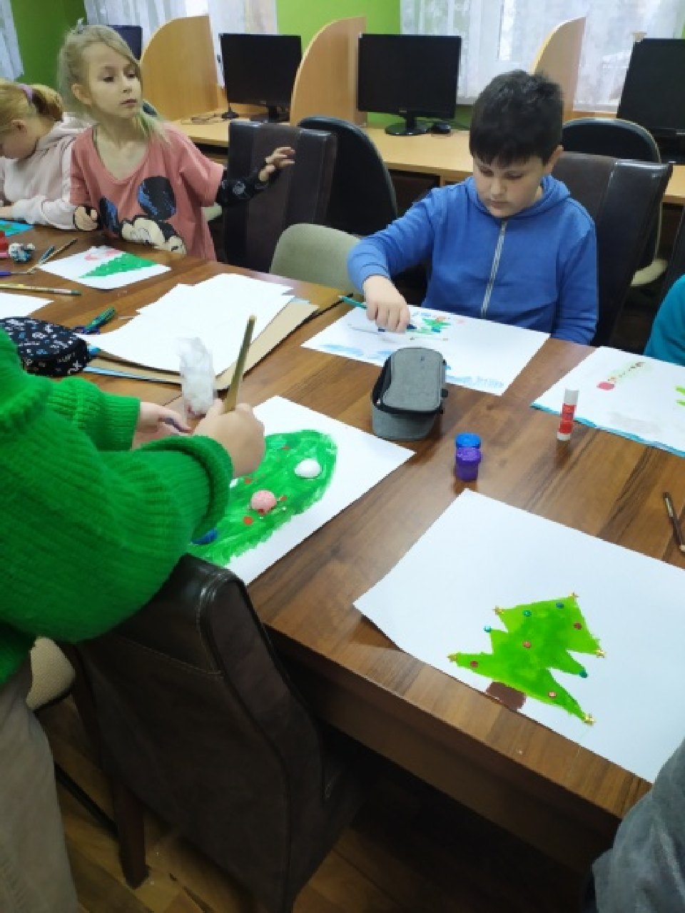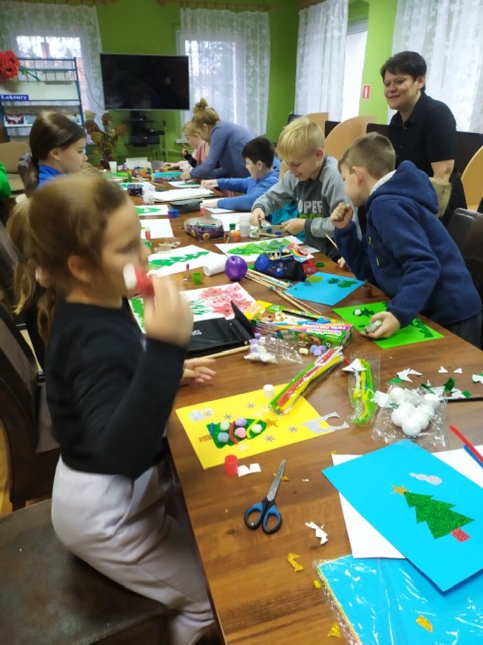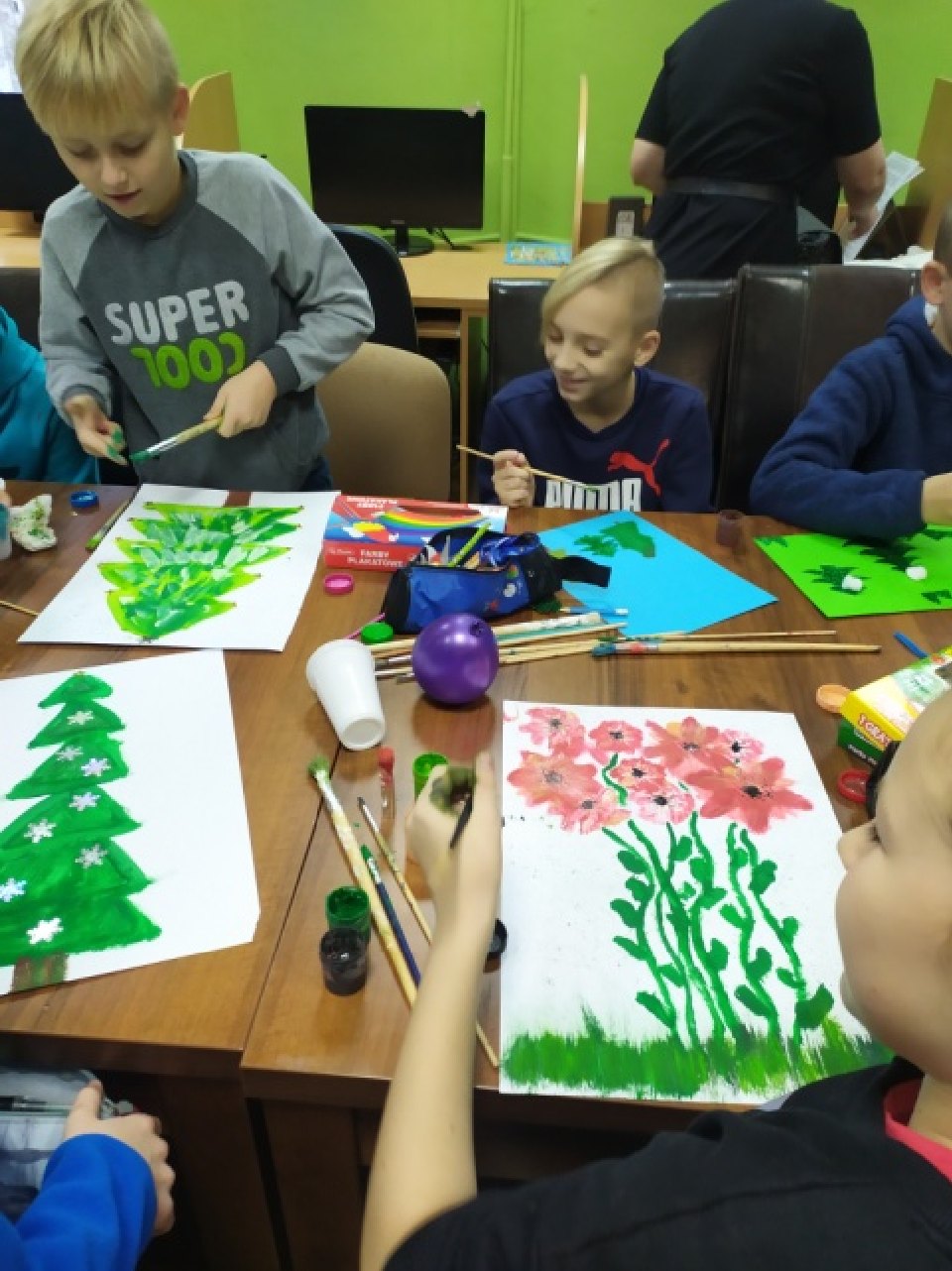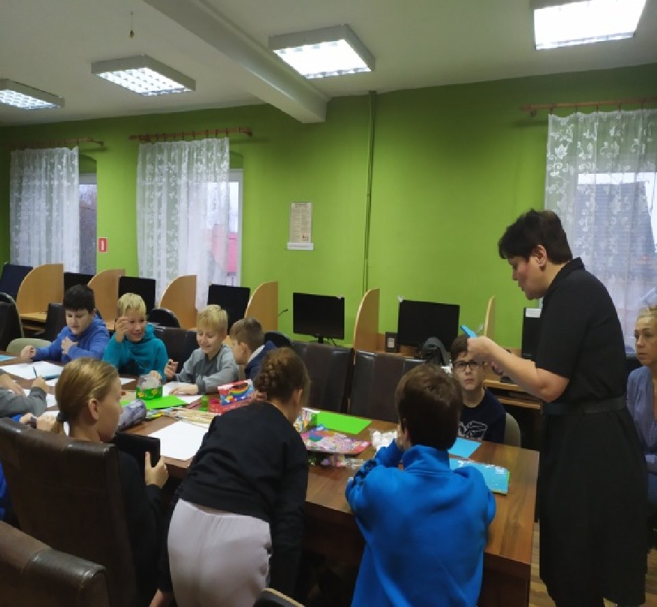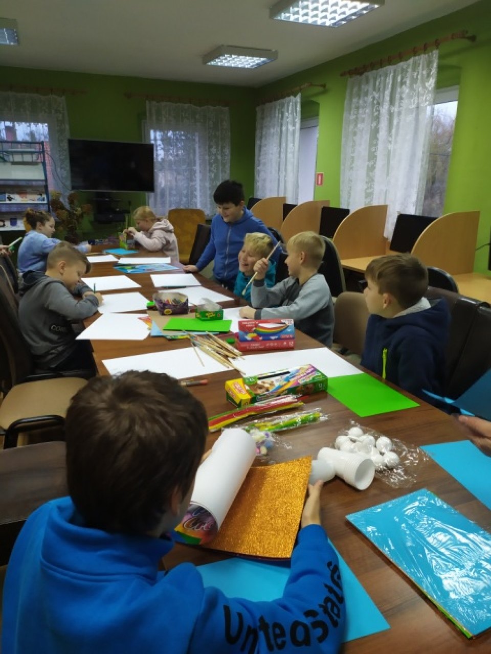 Uczniowie klasy IV ze Szkoły Podstawowej im. Mikołaja Kopernika w Zespole Szkolno-Przedszkolnym w Męcince wraz z nauczycielami uczestniczyli na zajęciach plastycznych, które odbyły się w GBP w Męcince.