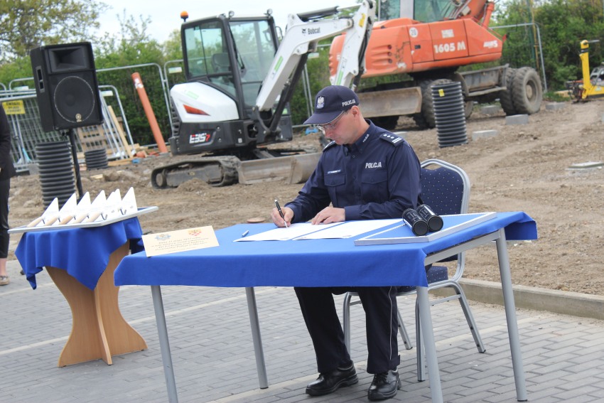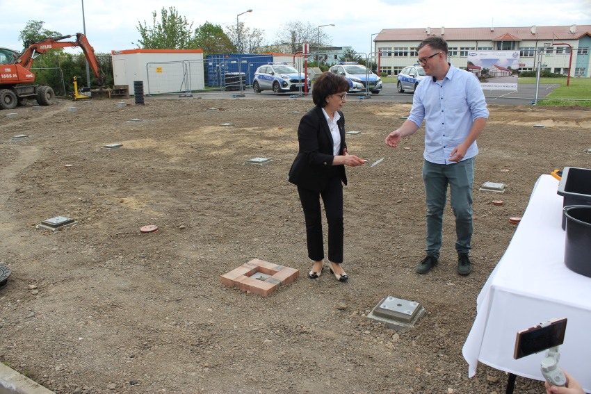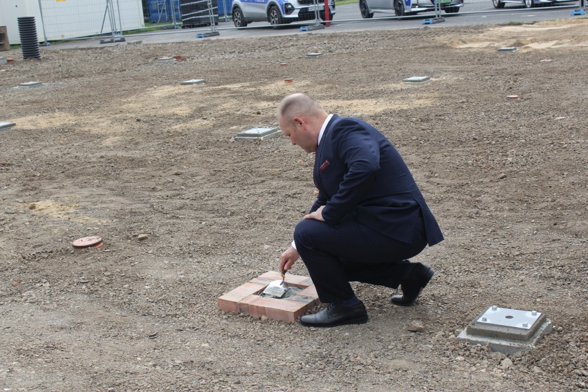 Wbudowanie kamienia węgielnego pod Posterunek Policji w Męcince