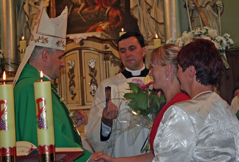 Proboszcz ks. Marek Lach w obecności wiernych przedstawił Biskupowi sprawozdanie z działalności parafii. A było się czym pochwalić. Ks. Marek oczywiście przez wrodzoną skromność nie dodał, że ogrom prac przy kościołach i plebanii wykonuje własnymi rękami. Ks. Biskup powiedział jednak pół żartem „nie będę pytać, kto kosi trawę", bo przecież nie od dziś wiadomo, że to ulubione zajęcie księdza Marka.