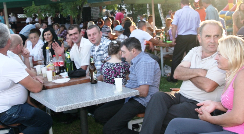 Po Eucharystii korowód dożynkowy wyruszył pod „Chatę nad stawem”, gdzie przygotowana była część biesiadna uroczystości. Wśród mieszkańców Małuszowa bawili również wójt Zbigniew Przychodzeń, starosta powiatu jaworskiego Stanisław Laskowski i sekretarz gminy Męcinka Andrzej Czech. Imprezę uświetnił występ strażaczek z Pomocnego. Dzieci jak zawsze zabawiała pani Ania, która poprowadziła gry i konkursy. Wieczorem można było podziwiać lampiony i sztuczne ognie. Muzykę zapewnił zespół Badziewiaki, a bufet obsługiwała „Andora”.