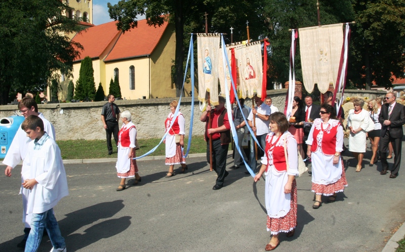Małuszów. Na parafialny odpust wieńce przywiozły Przybyłowice, Koiszków i
