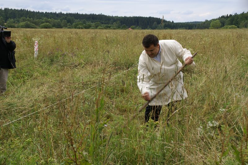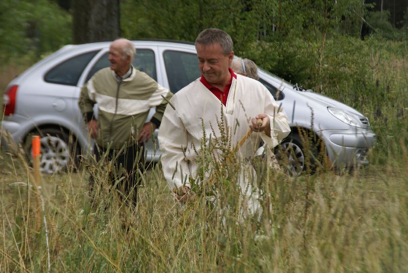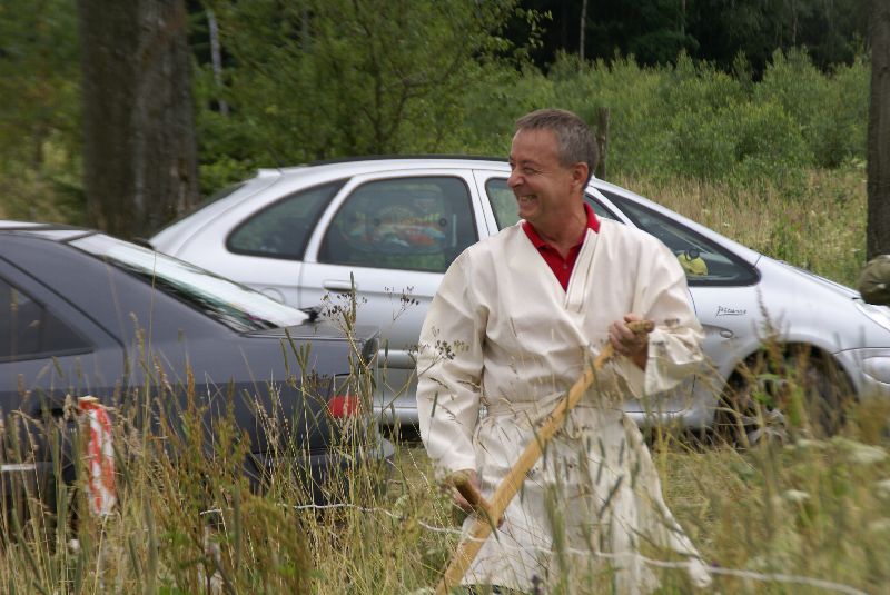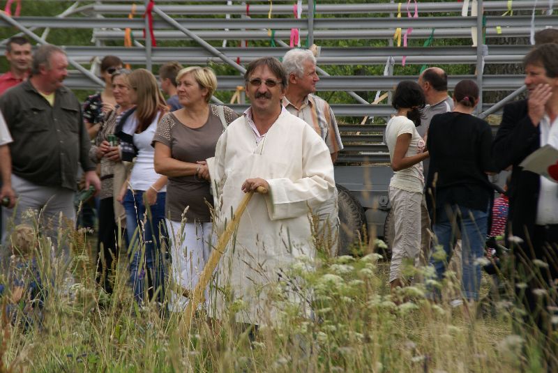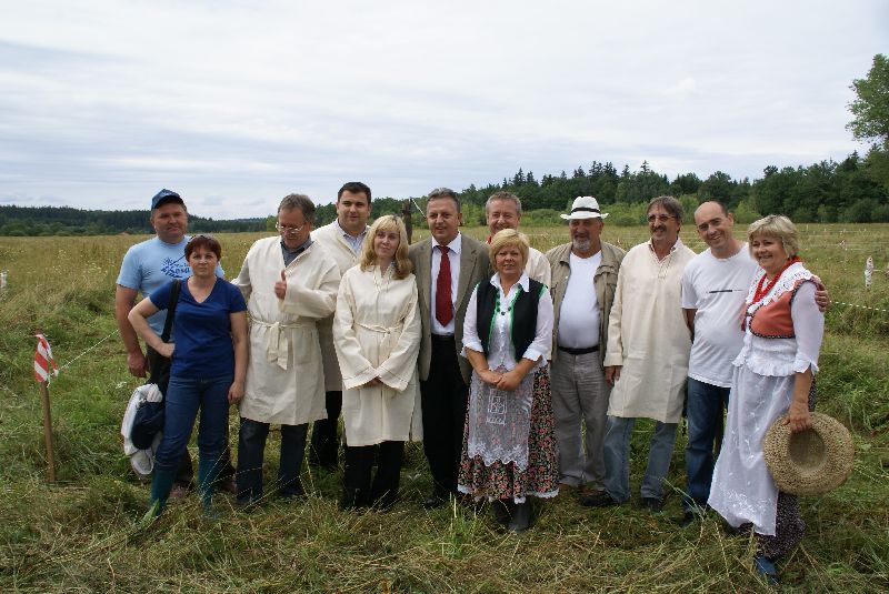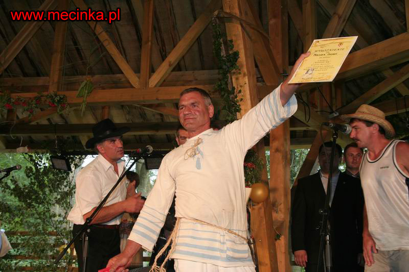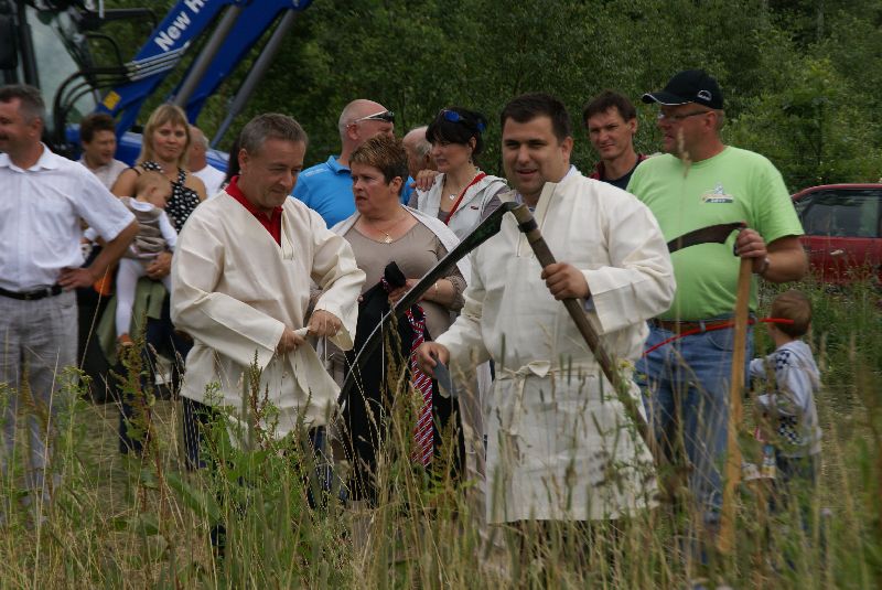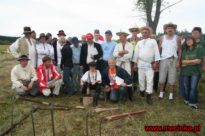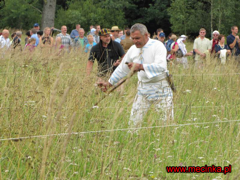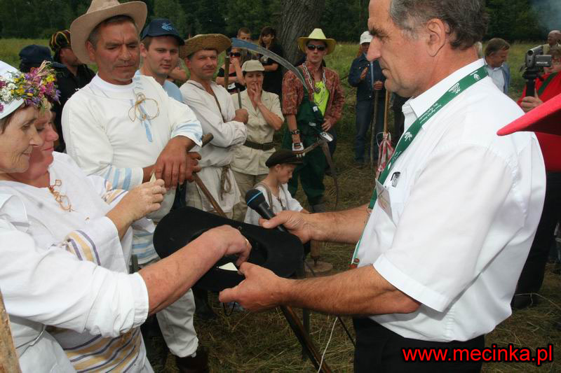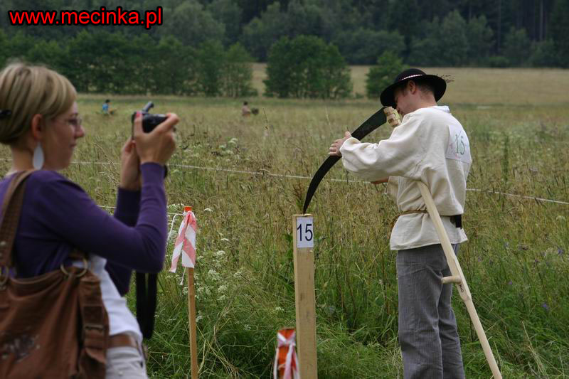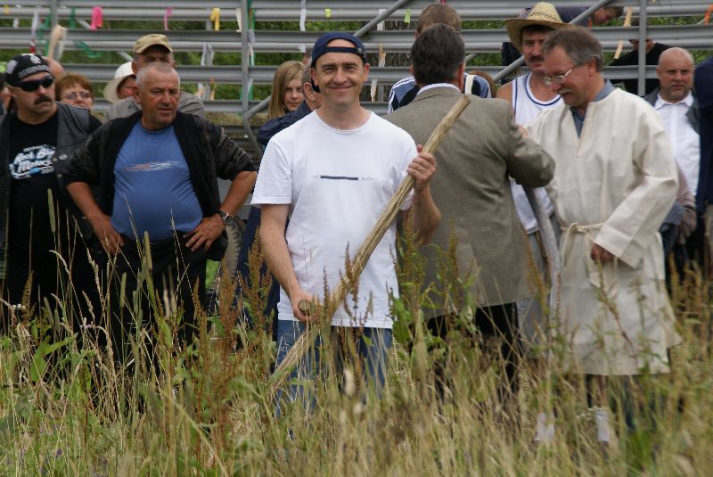Po polowej mszy św., którą odprawił proboszcz parafii Pomocne, ks. Marek Lach, zawodnicy i kibice wyjechali na muchowskie łąki. Konkurs koszenia łąk oceniała komisja pod kierunkiem sędziego głównego Edwarda Lityńskiego. W kategorii mężczyzn wzięło udział 18 uczestników. Bezkonkurencyjny w tym roku okazał się Andrzej Żądło z Pomocnego. Na drugim i trzecim miejscu znaleźli się zawodnicy z Saksonii (Niemcy) - Hartmut Sander i Steffen Sander. Niespotykanej u nas szerokości kosy nie tylko pomogły im w uzyskaniu wysokiego wyniku, ale również wzbudzały zainteresowanie publiczności. Warto dodać, że zawodnicy z Niemiec są mistrzami w koszeniu saksońskich łąk. Wyróżnienia w kategorii mężczyzn otrzymali Sylwester Miciak z Muchowa i Jiri Houska z Czech.