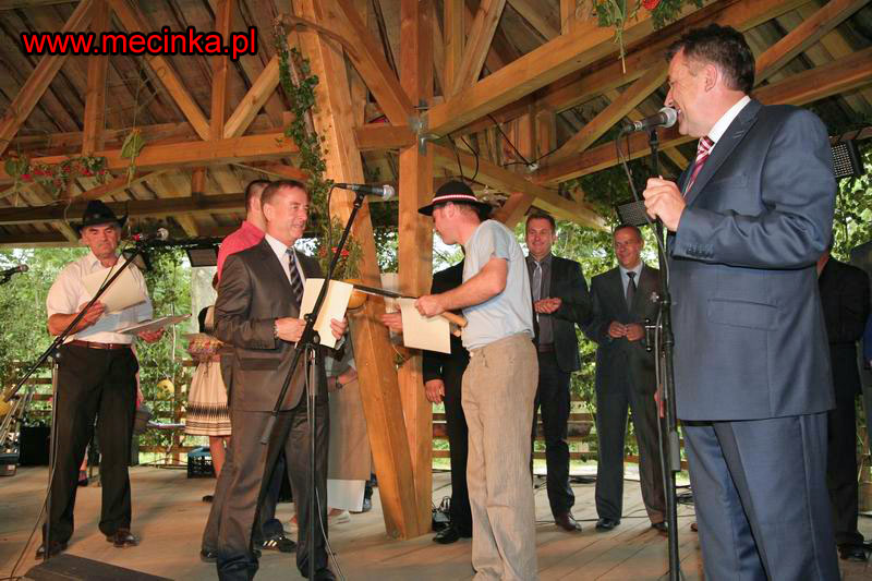 Wójt gminy Męcinka dziękuje wszystkim gościom, uczestnikom i organizatorom Muchowskiej Kosy. Swoją obecnością imprezę uświetniła poseł Elżbieta Witek; asystent europosła Piotra Borysa, radny RM Jawora Emilian Bera; Paweł Czyszczoń – dyrektor Wydziału Rozwoju Obszarów Wiejskich UMWD, Janusz Misiewicz – dyrektor Wydziału Organizacyjno-prawnego UMWD; Ryszard Czerwiński – dyrektor Dolnośląskiego Ośrodka Doradztwa Rolniczego we Wrocławiu; Włodzimierz Chlebosz – członek Zarządu Sejmiku Dolnośląskiego, Piotr Olchówka – komendant Dolnośląskiej WK OHP. Obecni byli także członkowie Zarządu Powiatu Jaworskiego: Piotr Pieniążek, Józef Święcicki i Zygmunt Melner oraz radni powiatowi: Mariusz Barański, Sylwester Rudziec i Grzegorz Urbanowski. Wójt Przychodzeń dziękuje za przybycie burmistrzowi Józefowi Kołczowi i wójtom Beacie Castaneda-Trujillo, Sebastianowi Oszczędzie, Sewerynowi Stercowi, Jerzemu Ulbinowi, Mariuszowi Forysiowi i Kazimierzowi Chudemu. Na Muchowskiej Kosie nie zabrakło księży z parafii gminy Męcinka – ks. Marka Kluwaka, ks. Marka Lacha, ks. Zbigniewa Dyla i ks. Jana Bryi. Nie zawiedli też radni gminy Męcinka z przewodniczącym Wiesławem Gregulskim na czele. Do sprawnej organizacji imprezy na terenie pałacyku przyczynili się dyrektor Jan Kłeczek, strażacy OSP Pomocne, pracownicy Urzędu Gminy, jurorzy oraz sołtys Muchowa Edyta Chudzik z Radą Sołecką. Wójt dziękuje również wszystkim zespołom i artystom oraz młodzieży, która w strojach mnichów promowała Cysterski Szlak. Ukłon kierowany jest też w stronę mediów, które i tym razem nie zawiodły, szeroko informując o Muchowskiej Kosie.