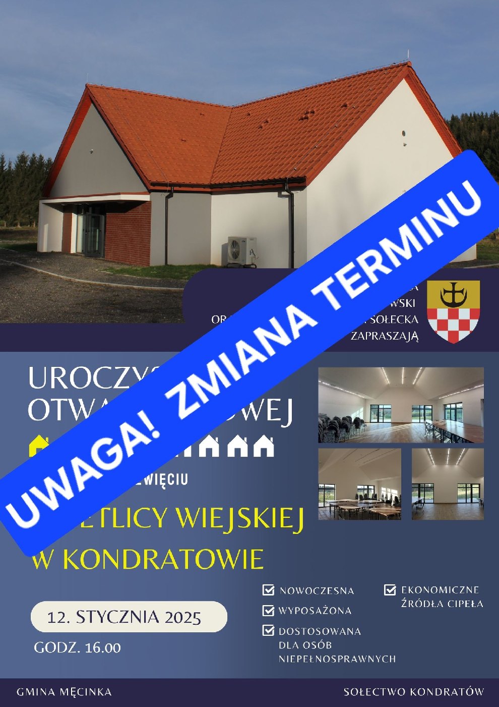 z uwagi na znaczne opóźnienie dostaw wyposażenia kuchni nowych świetlic wiejskich w Pomocnem, Kondratowie, Muchowie i Stanisławowie (meble, naczynia, sprzęt AGD) jesteśmy zmuszeni przełożyć termin otwarcia obiektów. Chcemy zaoferować Państwu funkcjonalnie wyposażone świetlice, z których będziecie Państwo mogli w pełni korzystać.