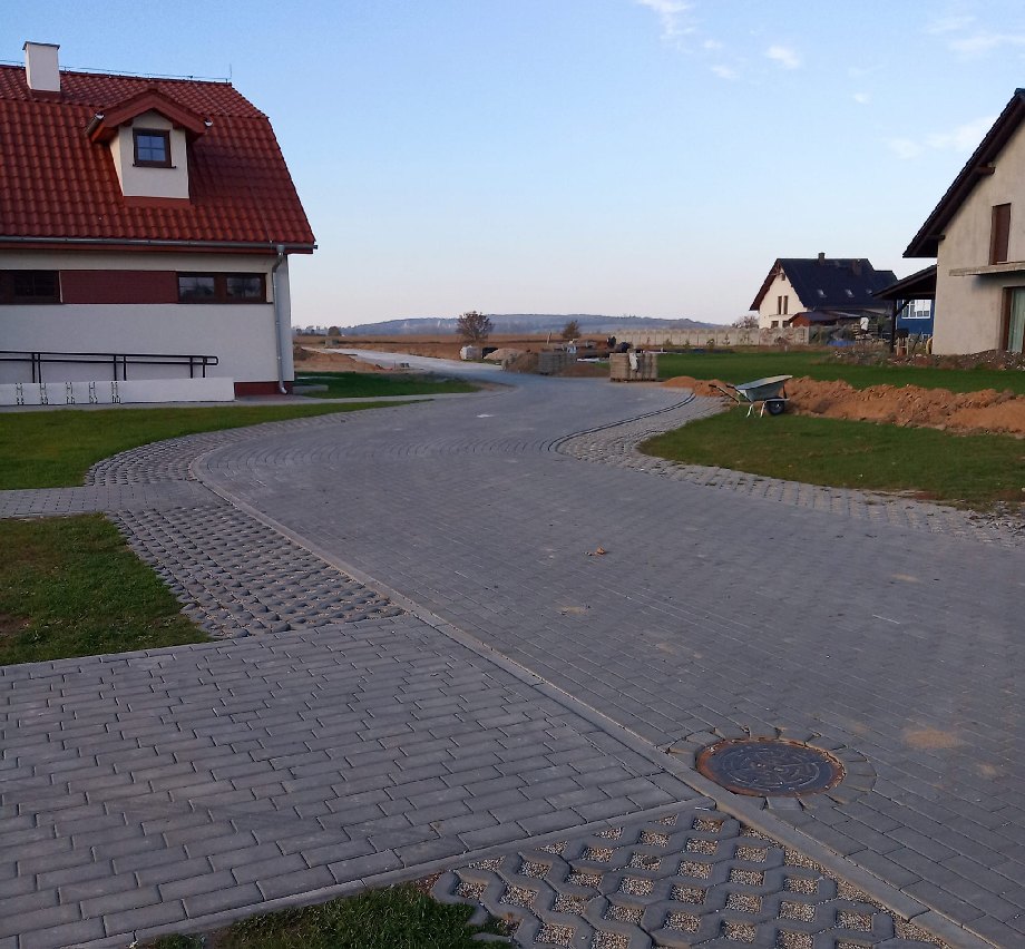 Zagospodarowanie terenu wokół nowej świetlicy w Piotrowicach. Powstają chodniki, oświetlenie, trawniki, a także boisko. Posadzone zostaną również drzewa.