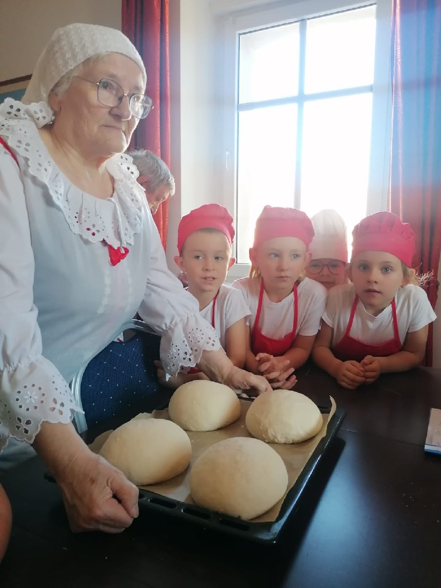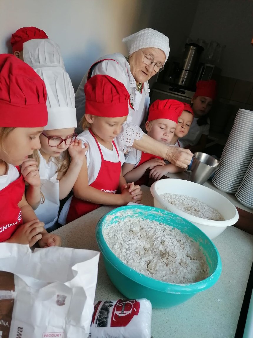 Grupa 6-latków z przedszkola w Męcince brała udział w warsztatach piekarskich, które przedszkole zorganizowało wspólnie z ZESPOŁEM FOLKLORYSTYCZNYM OJRY BIS Z MĘCINKI.
