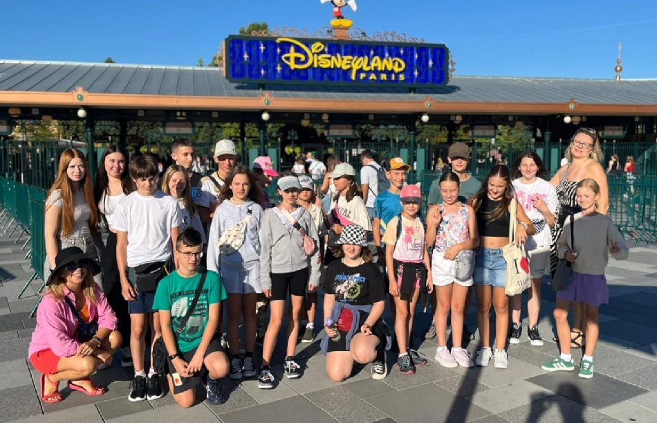 Nasi uczniowie z Gminy Męcinka pozdrawiają wszystkich Mieszkańców z Disnaylandu w Paryżu.