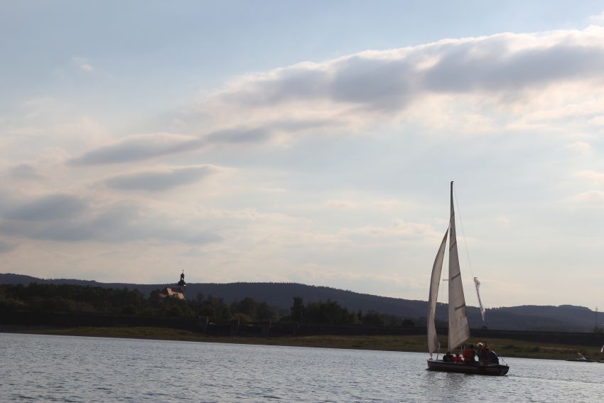 Klub Żeglarski „Cysterska Brać” działający od trzech lat na terenie Gminy Męcinka zorganizował pierwsze Regaty Żeglarskie na terenie zbiornika Słup. W sobotę na mieszkańców nie tylko gminy ale również okolicznych miejscowości czekało wiele atrakcji. Ponadto 250 osób pod okiem wykwalifikowanych instruktorów spróbowało swoich sił na wodzie. Każdy odwiedzający w tym dniu zbiornik Słup mógł bezpłatnie popłynąć żaglówką i poznać żeglarskie szlagiery.